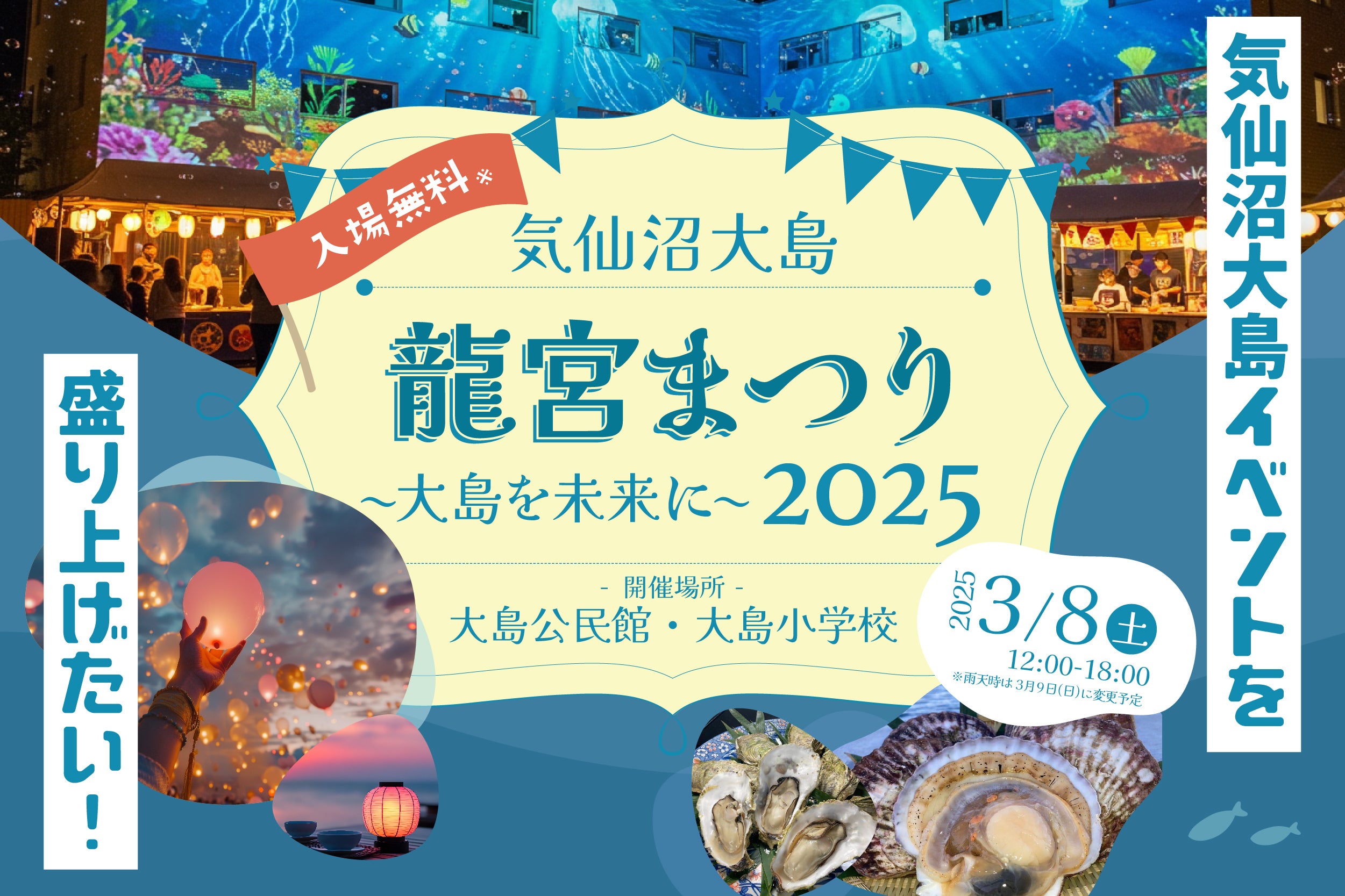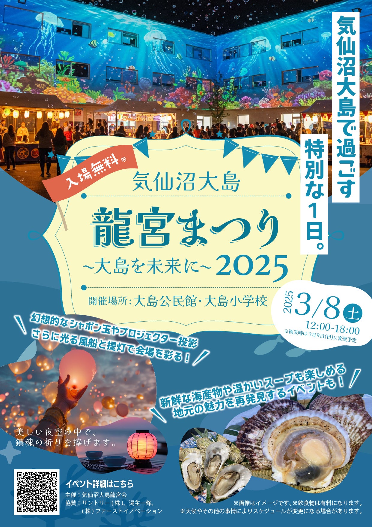 この度、2025年3月8日に、宮城県の気仙沼大島で1日楽しめるイベント「気仙沼大島 龍宮まつり2025 〜大島を未来に〜」を開催いたします。