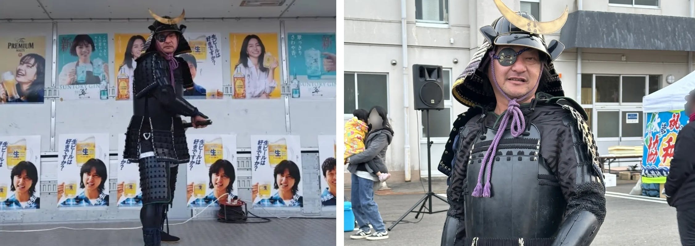 気仙沼大島龍宮会の小松会長が武士に扮し、スモークの中から勇ましく登場。子どもたちの歓声が響き渡り、迫力ある演出に会場は大盛況となりました。