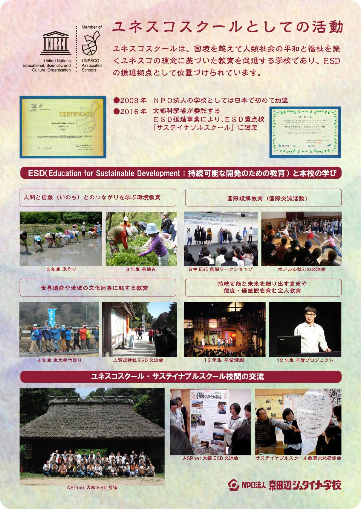 2009年にはNPO法人の教育機関として日本初のユネスコスクールに認定され、2016年9月には「ESD 重点校形成事業」においてサスティナブルスクールとして採択、2024年には認定NPO法人に認定されました。