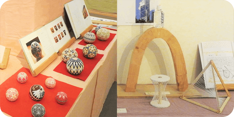 休憩時間には展示コーナーで卒業生が制作した作品などの展示を行ないます。