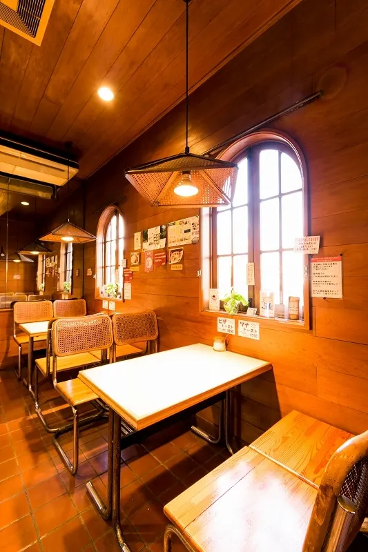 木造の窓枠は形がとてもかわいく、一瞬でこの空間が好きになりました。外観からは想像できない、ぬくもりあるノスタルジックな店内。