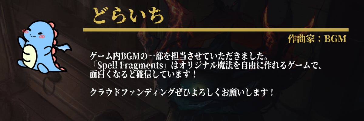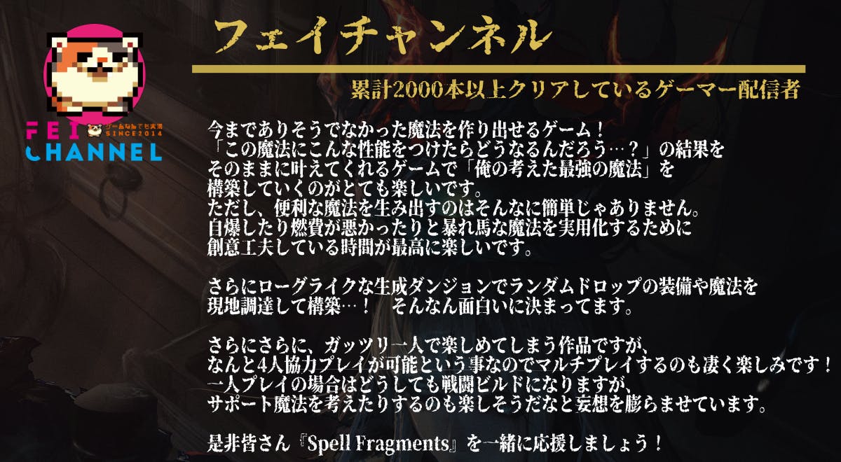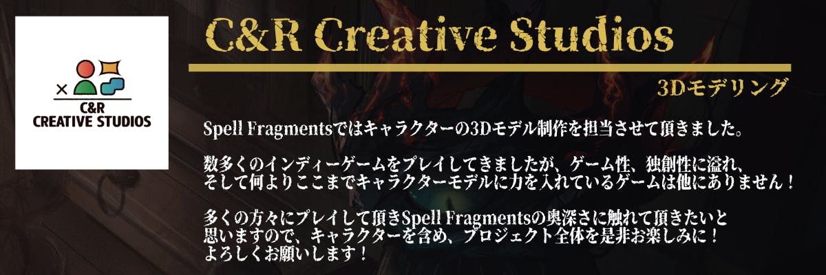 このゲームのコンセプトに共感していただける方と一緒に、Spell Fragmentsに情熱を注いで、最高のゲームに育てていきたいと思っています。