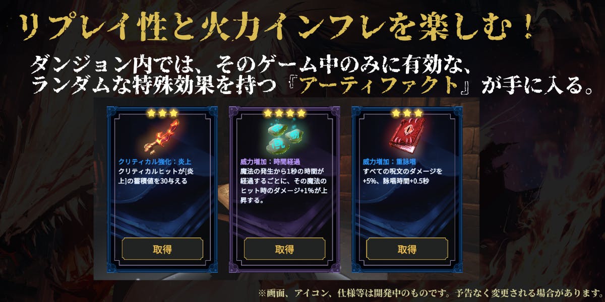 また、「もっと強力な最強魔法が作りたい!」というロマンを実現する為、より大きなポイント範囲内で、強力な魔法などを持ち込んでプレイできるダンジョンや難易度なども用意する予定ですので、ご安心ください。