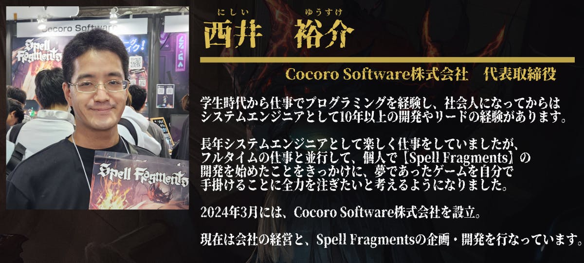Cocoro Software株式会社、代表の西井 裕介(にしい ゆうすけ)と申します。