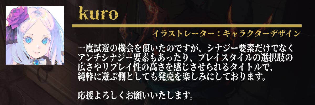 そうして魂を込めて作って来た、「自分が熱中できるゲーム」だからこそ、日本中・世界中のゲーマーの中でも同じような好みを持つ方々に、私と同じように本気で熱中して楽しんでもらえるゲームになると確信しています。