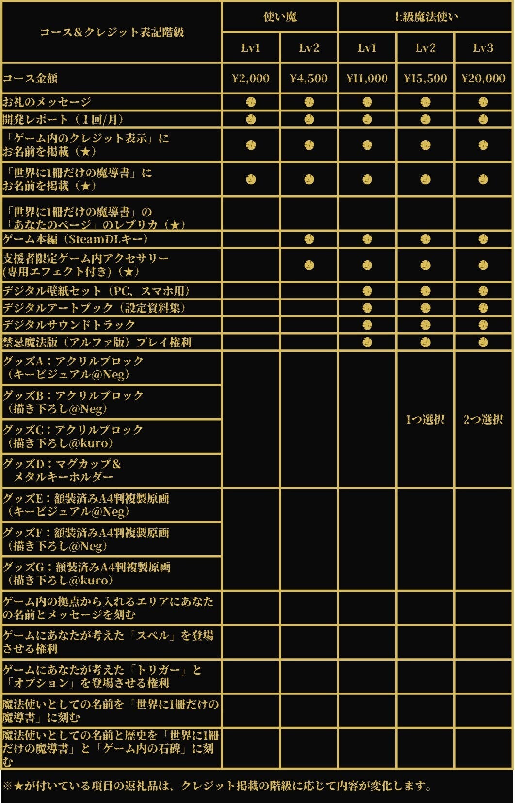 ※複数の通常コースを支援してくださっている対象者とは、例えば「使い魔Lv2」と「特級魔法使いLv1」を同時に支援してくださっている方などを指します。