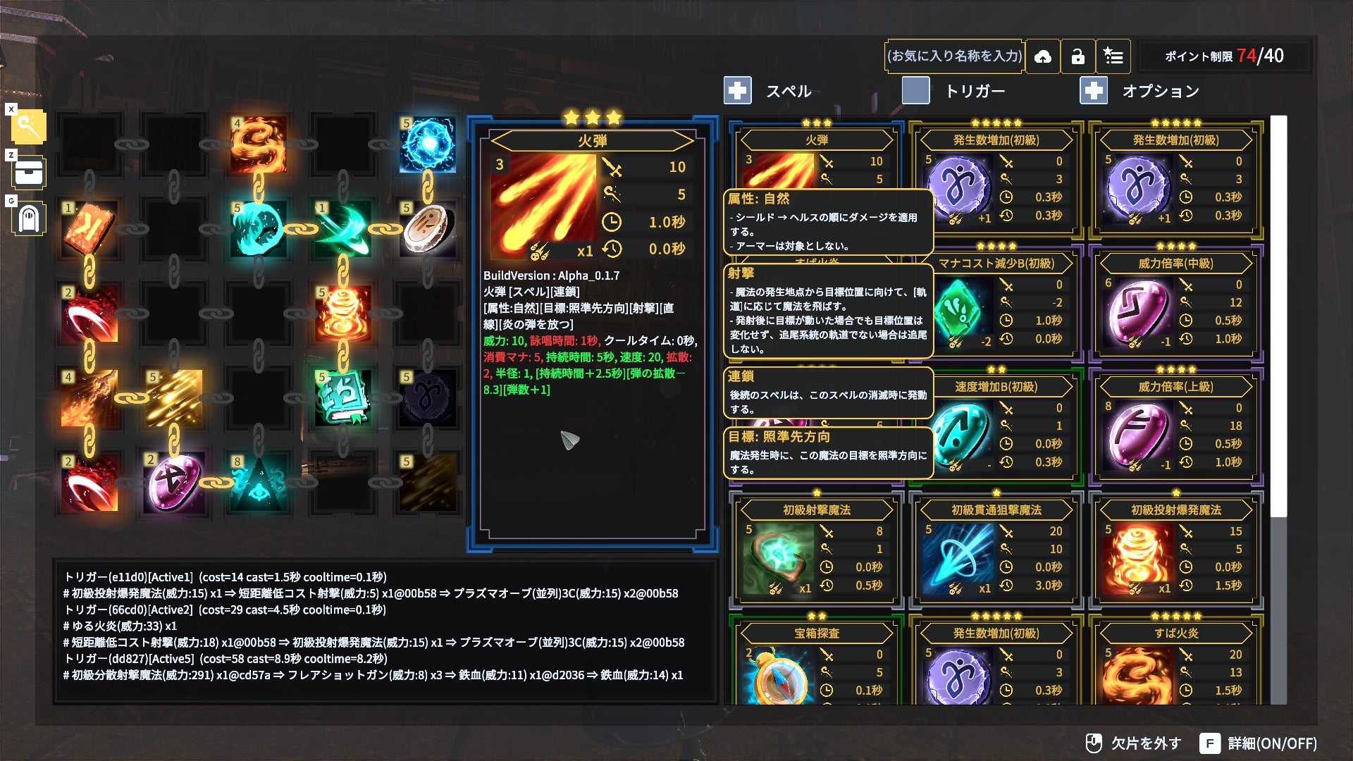 ハクスラやトレハン要素としてアイテムや呪文の欠片は少しずつ性能が異なるので、その差異も含めてどんな魔法を作るのが良いか、その場で、その人ごとに楽しんでもらえるようにする方針です。