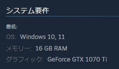 A:Steamページにて、以下の通り最低システム要件を掲載中です。