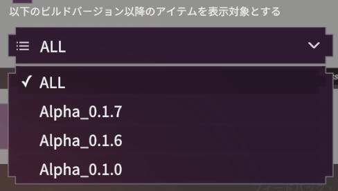 設定画面を開くと右下に、以下の画像の様な「以下のビルドバージョン以降のアイテムを表示対象とする」設定が追加されます。