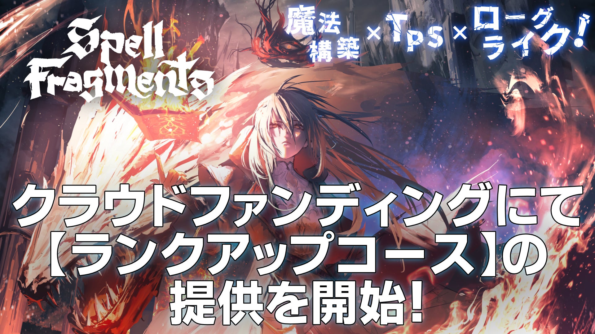いつもSpell Fragmentsを応援していただきまして、ありがとうございます。3月13日より、Spell Fragmentsのクラウドファンディングに、新しく「ランクアップコース」を追加いたしました。本作のクラウドファンディングでは、アルファ版となる「禁忌魔法版」を返礼品としてご提供していますが、これまでに多くの支援者様から「アルファ版が含まれないコースを支援したが、後からアルファ版を遊びたくなった」というお声をいただいていました。本日追加した「ランクアップA」「ランクアップB」の2つのコースでは、すでにご支援いただいていた支援者様が、アルファ版の返礼品を含む上位のコースにアップグレードする手軽な選択肢となります。この機会に、是非ご検討いただけますと幸いです。また、このコースの追加前に、すでに「使い魔」コースと「上級魔法使い」以上のコースの、複数のコースをご支援いただいている支援者様に関しては、古い方の使い魔コースのキャンセル対応が可能です。詳細に関しては、本活動報告の後半《◆複数のコースを支援済みの支援者様へ》をご覧ください。◆追加コースについてランクアップA (9000円)支援済みの「使い魔 Lv1」(2000円)コースを「上級魔法使い Lv1」(11000円)にアップグレードできます。ランクアップB (6500円)支援済みの「使い魔 Lv2」(4500円)コースを「上級魔法使い Lv1」(11000円)にアップグレードできます。上位コースとの差額のみ追加でご支援をいただくことで、禁忌魔法版(アルファ版)を始めとした、下位のコースに含まれていなかったゲームのアルファ版やデジタルサウンドトラック、上位コースの支援者限定のゲーム内アクセサリー等、ランクアップした返礼品を受け取ることが可能です。禁忌魔法版(アルファ版)のDLキーは、追加のご支援から1日以内を目安にお届けしています。※このコースは、すでに「使い魔」コースを支援済みで、後からコースをアップグレードしたくなった方の為のコースです。別のコースを支援されたことが無い方は、ランクアップではない通常のコースを選択してください。◆複数のコースを支援済みの支援者様へこちらのランクアップコースの追加前に、禁忌魔法版等のプレイの為に既にコースの差額ではなく全額を追加でご支援いただいて、「(上級魔法使い以上のコースを含む)複数のコースを支援した」状態となっている支援者様については、ご要望に応じて古い方の「使い魔 Lv1」または「使い魔 Lv2」コースのキャンセルが可能です。こちらのキャンセル対応が必要な場合は、CAMPFIREのメッセージ機能にてご連絡ください。(キャンセルせず、重複したコースの返礼品を受け取ることも問題ありません)なお、このキャンセル対応方針については、Spell Fragmentsのクラウドファンディング独自の方針であり、CAMPFIREの他プロジェクトに関しては同様の対応を実施していない為、ご注意ください。■ お問い合わせキーに関して不明点やトラブルなどがあれば、お気軽に下記の連絡先までお問い合わせください。・公式Discordコミュニティ https://discord.gg/bcHJkqFktd・公式Xアカウント https://x.com/SpellFragments・CAMPFIREのメッセージ機能・Cocoro Software株式会社 サポート窓口 support@cocorosoftware.com引き続きSpell Fragmentsをよろしくお願いいたします。