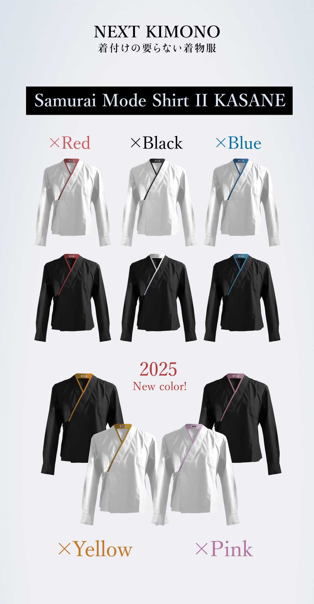 伝統的な着物の粋なオシャレ遊びの1つをシャツ1枚でも気軽に楽しめるようデザインしたのがSamurai Mode Shirt II “KASANE”です。