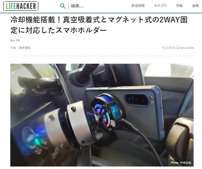 3月18日、LIFEHACKERで「車内のスマホ置き場、これで決まり。充電も冷却もこなす“気が利く”スマホホルダー」を紹介して頂きました。