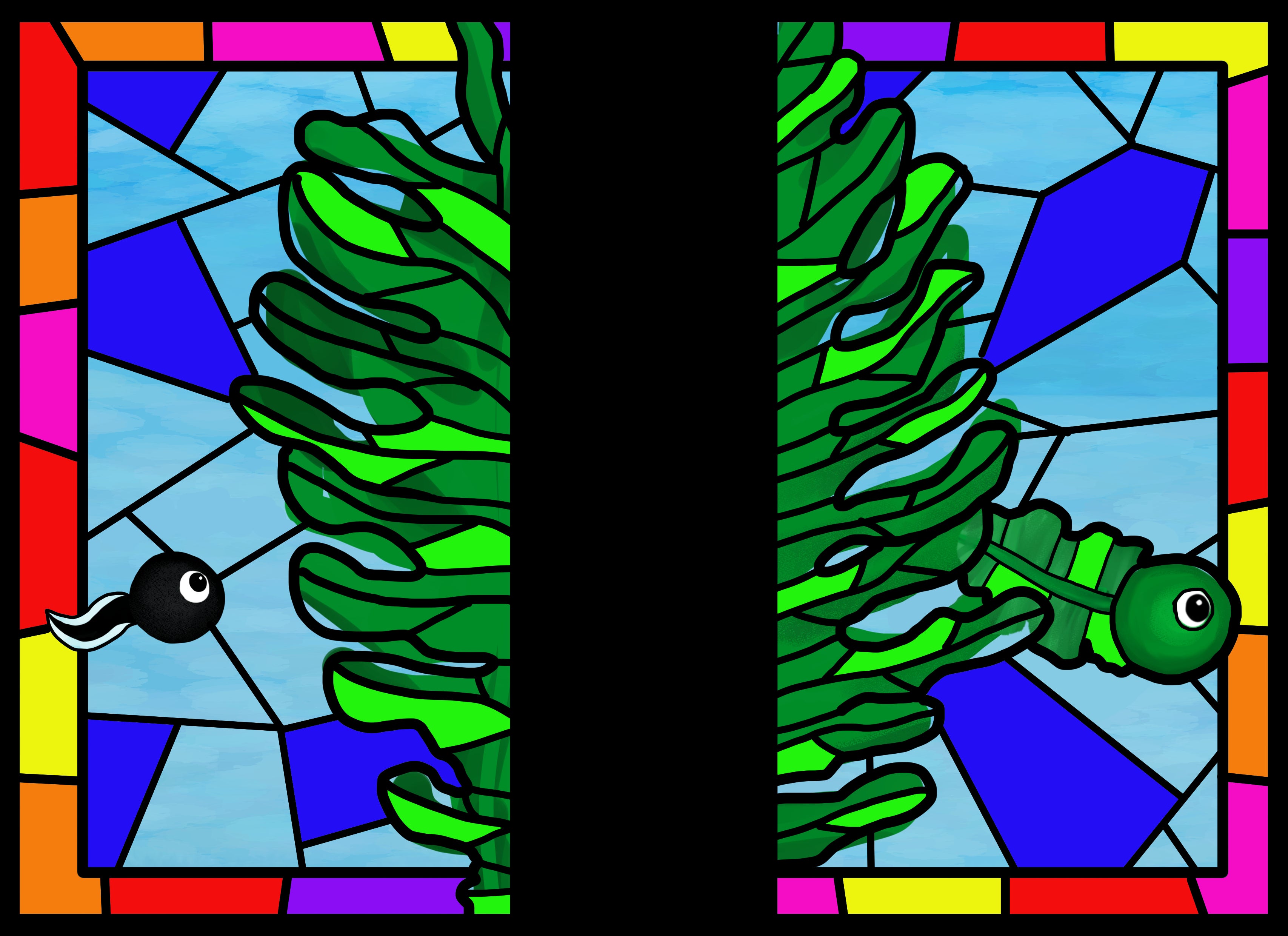 私、フーミンが作った『およげ、みずたまベイビー』という絵本があります。おたまじゃくしが海へ行き、いろんな生物にあって、カエルになるという物語です。