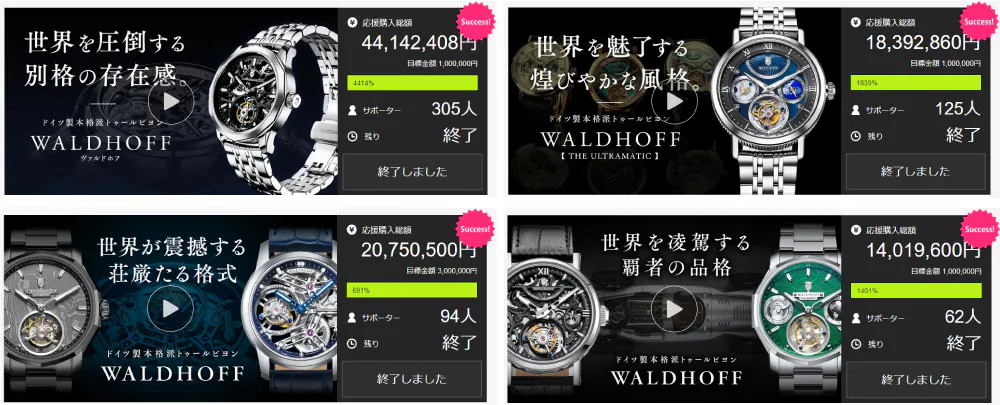 ドイツの高級トゥールビヨンブランドWALDHOFFのプロジェクトはMakuakeで発表させて頂いて以来、その他も含め累計購入金額1.8億円を突破いたしました。