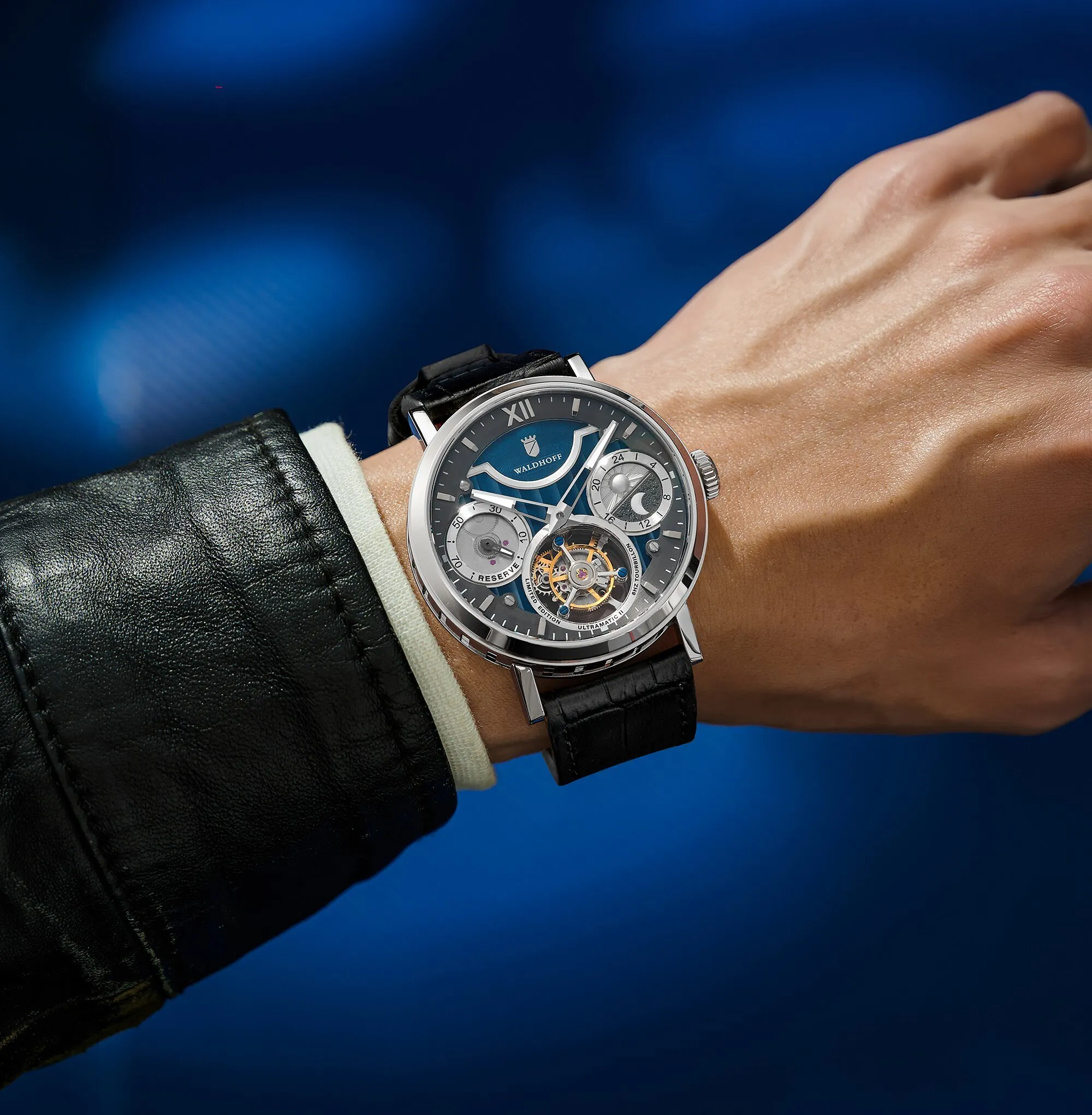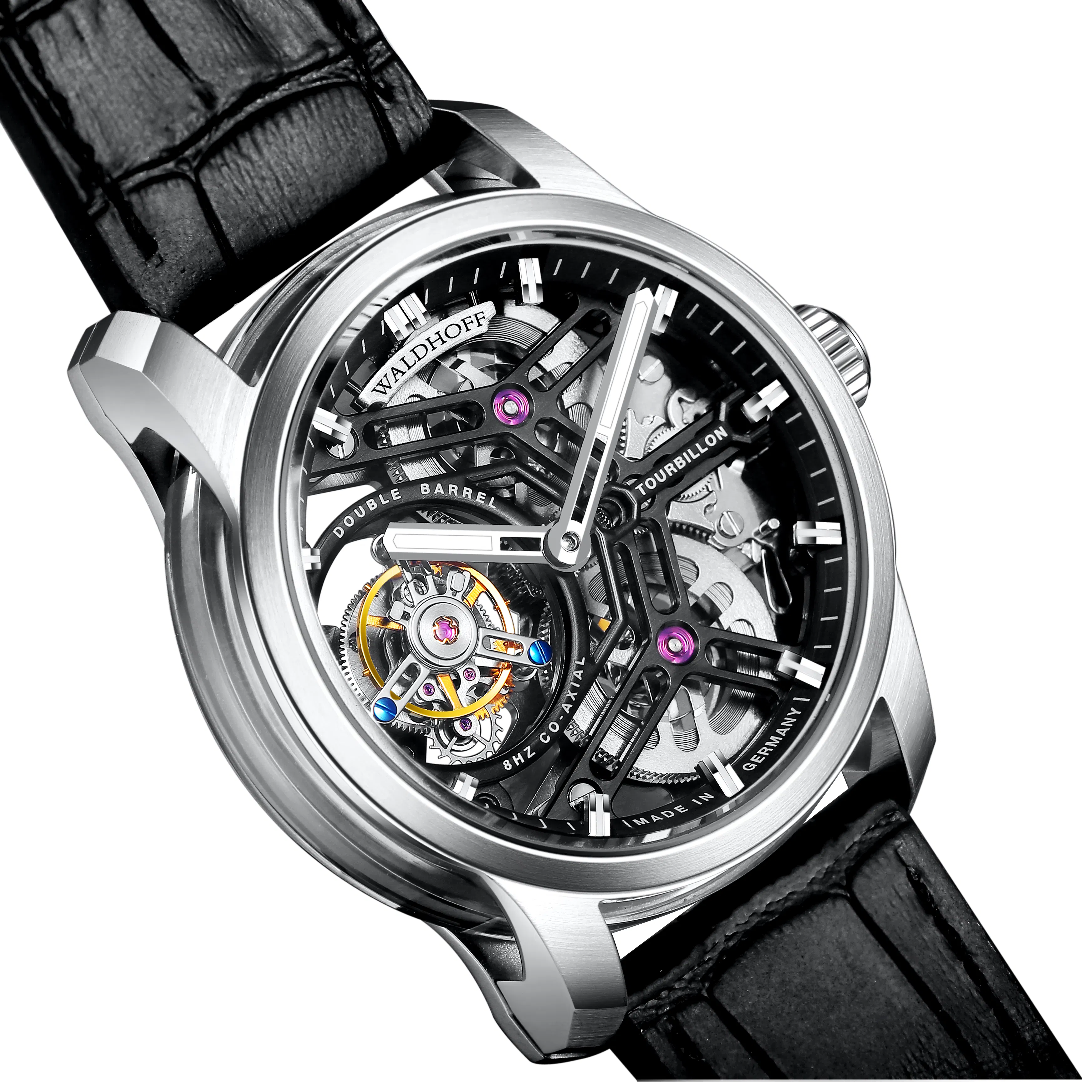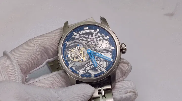 [QUANTUM Ti]はWALDHOFFで最も成功を納めたトゥールビヨンの一つ[QUANTUM]の精神を受け継ぎながら、ケースのフレームを高級ステンレスから「グレード5の純チタン」に。