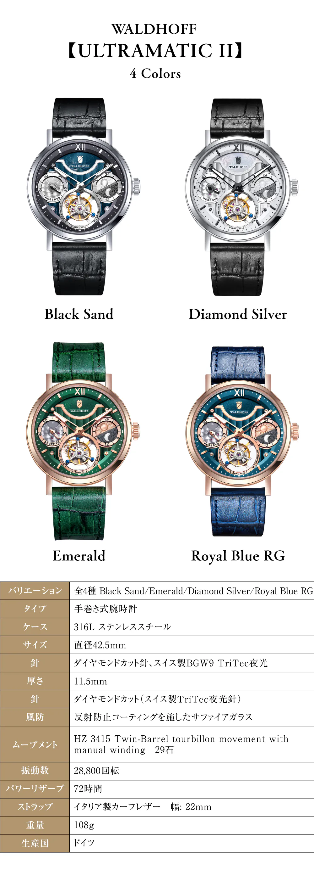 [QUANTUM Ti]と[ULTRAMATIC II ]は前回大好評を頂いた、ドイツ製トゥールビヨンの最高峰WALDHOFFの「進化版モデル」です。