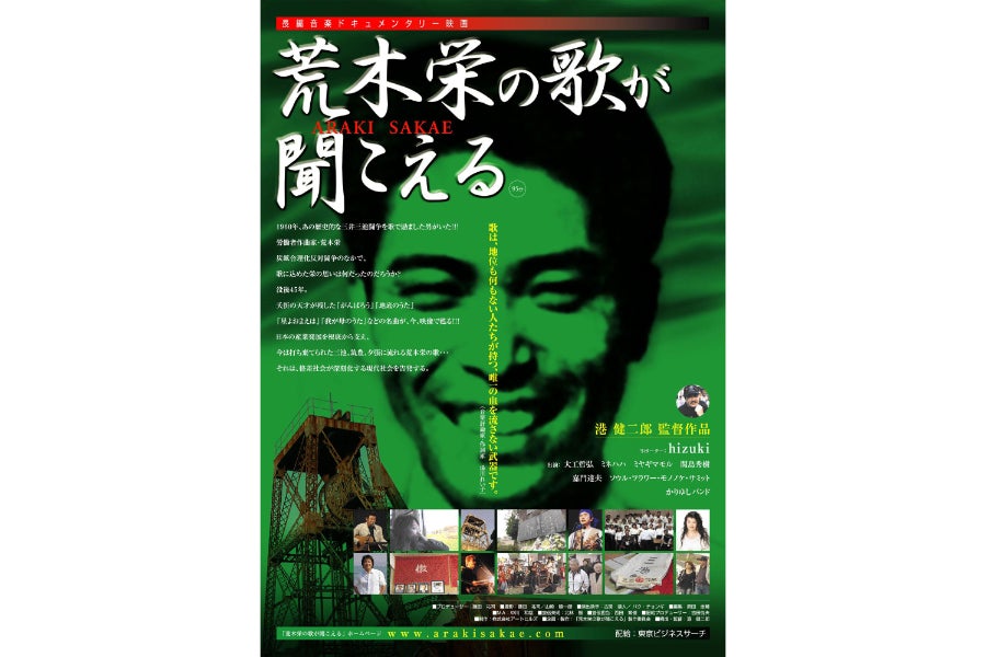 ●監督にあたって・・・「荒木栄生誕100年を控えた昨年春以来、地元・三池で荒木栄と共に闘い今もなお栄のうたを歌い続けている皆さん等から、ぜひ、映画を作って欲しいという要請がありました。私は三井三池に生まれ、これまで、『労働者作曲家 荒木栄』、『荒木栄の歌が 聞こえる』(第27回日 本映画復興会議奨励賞)などを作り、「荒木栄」をライフワークとしてきました。今回は、その集大成の企画でもあり、喜んでお受けし、三池闘争という巨大な舞台を背景として、優れた労働者作曲家へと成長した栄 の人柄や創造の秘密を、生前の栄を良く知る人々や、栄の志を受け継ぐ人々などの証言などで、栄と共にうたごえ 運動に人生を賭 けた人々の群像をも奥行き深く描き出しながら、闘うすべての労働者の素晴らしい人間性や新しい社会を築く 人間像を高らかに歌い上げたいと願っています。そして、この映画の音楽は、大牟田出身のinfix 長友仍世 さんにお願いします。仍世 さんの故郷への熱い想いが、栄のヒユーマンな情熱と響き合って、映画に深く気高い彩を与えて頂けるてくれるものと期待しております」