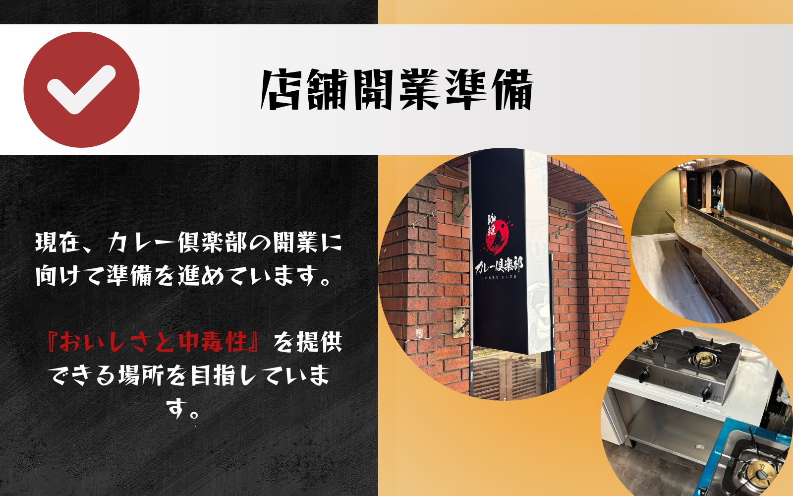 2025/08/26 10:42みなさま、応援ありがとうございます。ついにお店の登りが届き、店内の準備もほぼ完成いたしました。実際に形になってくると、いよいよオープンが近づいていることを実感し、胸が高鳴っています。ここまで来られたのも、ご支援いただいた皆さまのおかげです。今後は最終的な備品の調整や、メニューの仕上げに取り組んでいきます。オープンの日を楽しみにしていただけるよう、引き続き進捗を共有してまいりますので、どうぞよろしくお願いいたします!※クラウドファンディングはまだ継続中ですので、もしよろしければご家族やご友人、SNSなどでこのプロジェクトをご紹介いただけたら大変嬉しいです。▼クラウドファンディングページはこちらhttps://camp-fire.jp/projects/824889/view▼カレー倶楽部の公式Xアカウントhttps://x.com/curryclub0505?s=21&t=xkugXRu8MgQfqSgiFymBdw▼カレー倶楽部の公式Instagramアカウントhttps://www.instagram.com/curryclubman?igsh=NWFvZWZmbnF5YjI3▼カレー倶楽部の公式TikTokアカウントhttps://www.tiktok.com/@curryclubman?_t=ZS-8xz8TNL3Xj6&_r=1引き続き応援のほどよろしくお願いいたします!カレー倶楽部 店主 九島翔 もっと見る