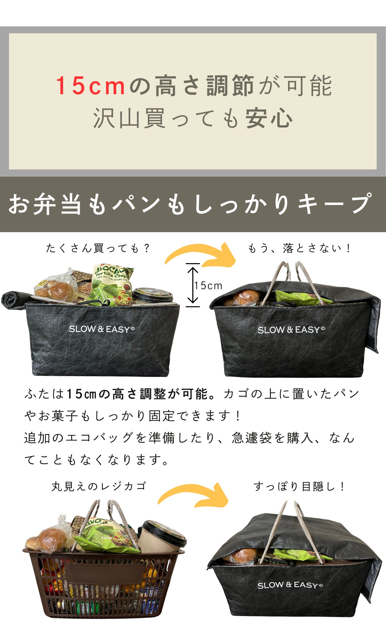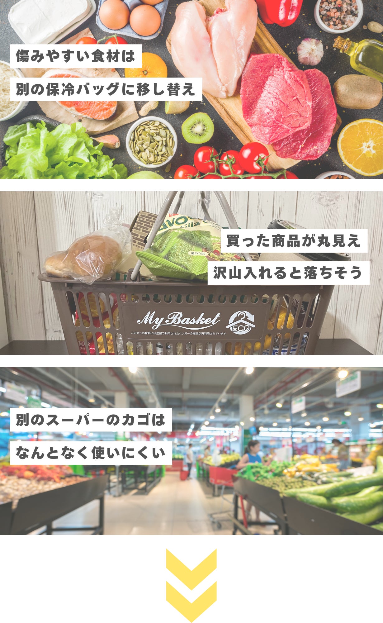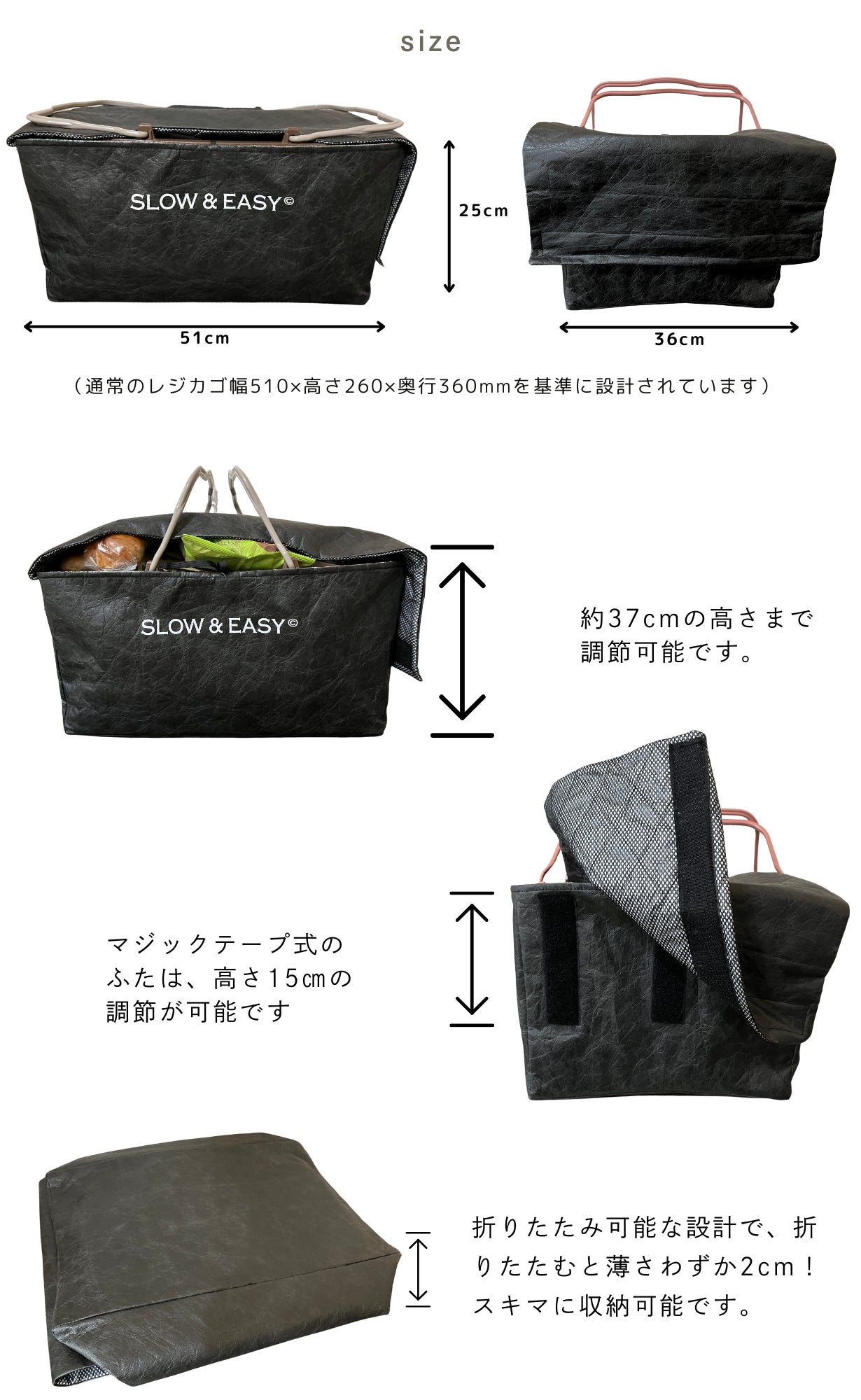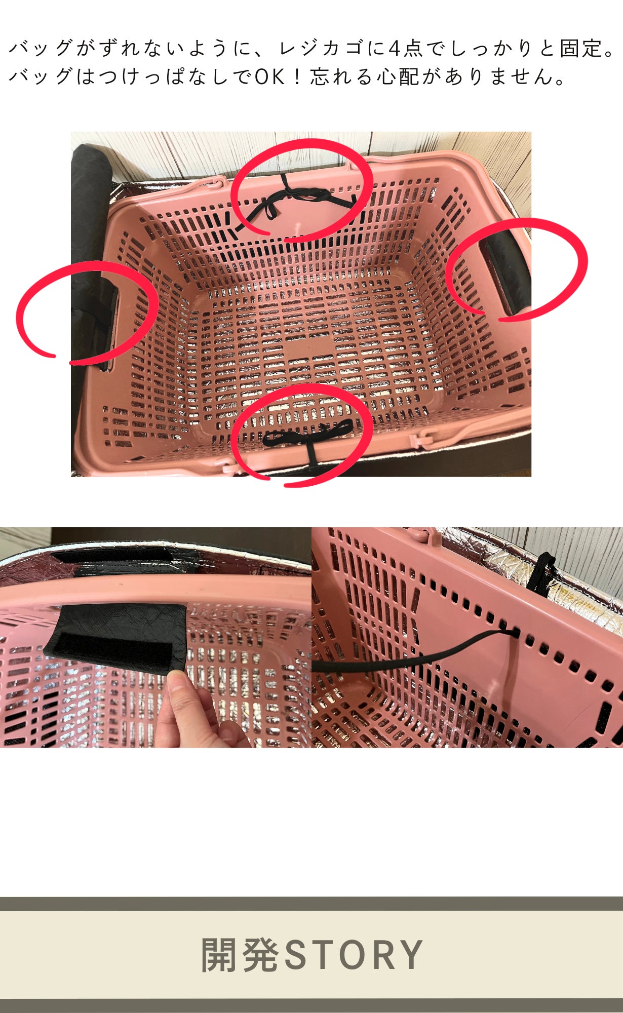 ※本製品は一般的なサイズのレジカゴにフィットするよう設計されていますが、スーパーの店舗やレジカゴの形状によってはご利用いただけない場合がございます。