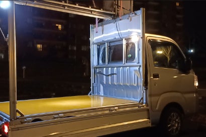 2020年から軽トラックと軽トレーラーを使った運送事業を開始しました。当初から軽トラックに自作のボディを装着して配送に使用してきました。今回優れた製品ができたことから、活用方法を探っています。
