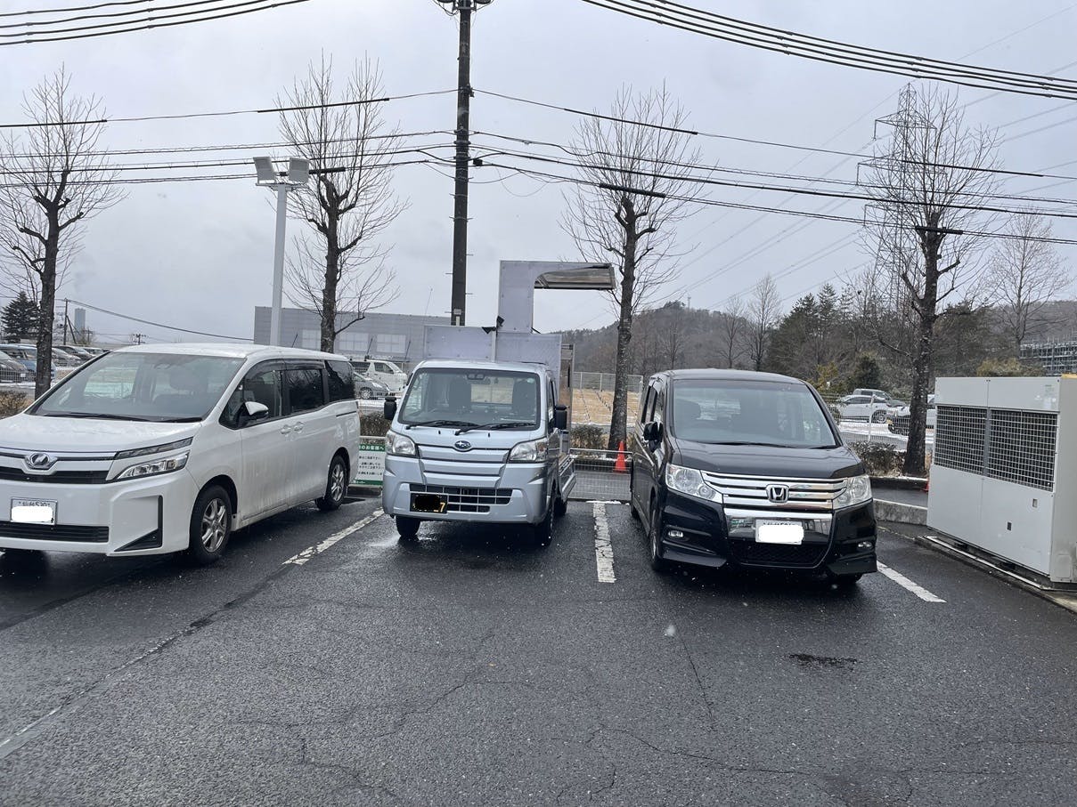 このトラックボディを見てよくされる質問で、「横のスペースが無いと開閉できないんじゃないの?」というのがあります。大丈夫、意外と狭いスペースで開けることができます。写真はよくあるスーパーの駐車場でちょっと狭い枠なのですが、余裕でウイングを開けることができます。スイングドア(運転席)よりうんと小さな隙間で開けることができます。買い物を積むときは、横から積むのが便利です。後ろから積むと、荷物が移動しないように前まで押しやらないといけません。横からなら、ひょいひょいと積んですぐに終わります。長い物を積むときも、後ろから突っ込もうとすると後方に大きなスペースが必要ですが、横からならすんなり載せられます。スライドドアは側面の一部しか開きませんが、ウイングは全面開放です。荷役性は抜群です。