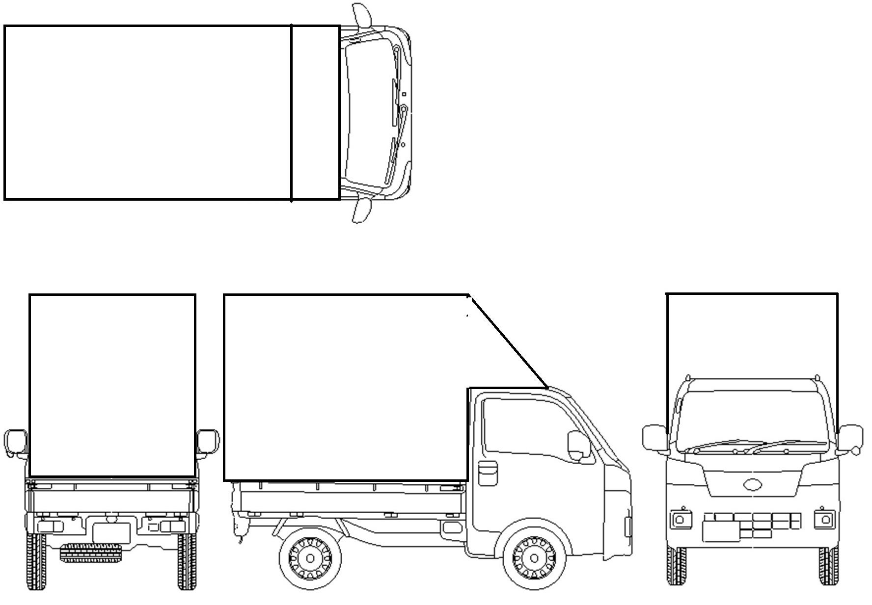 キッチンカー、キャンパーのベースとなる全高2.5mモデルのスケッチがこちら。