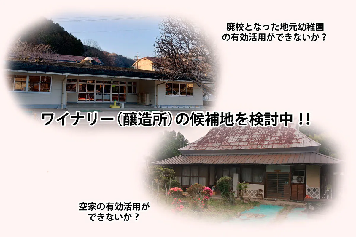 また、昨今問題となっているのが、山間部の耕作者不足・耕作放棄地の拡大です。この地区でも例外ではありません。山沿いの斜面を活用したワイン用ぶどう栽培プロジェクトを軌道に乗せることで、将来的には一緒にワイン造りを行う仲間が増え、総社市山間部の農地活性化が出来るのでは、と期待しています。