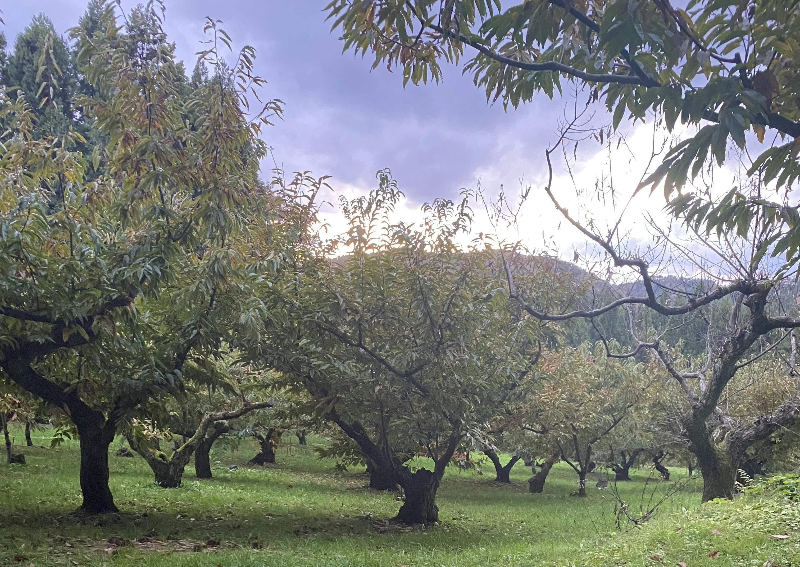 2月中旬穴水町の収選果場の整地の際にも手伝ってくれた同級生が、栗園の剪定にも応援に来てくれています。彼は実力のある庭師で、機械や道具の使い方、樹木の知識を教えてくれるだけでなく、剪定作業も手伝ってくれたおかげで、作業をかなりハイペースで進めることができました。3日間で2人で130本を仕上げ、残りはあと80本ほどです。晴れ間を見つけながらの作業ですが、もう少し頑張ります。