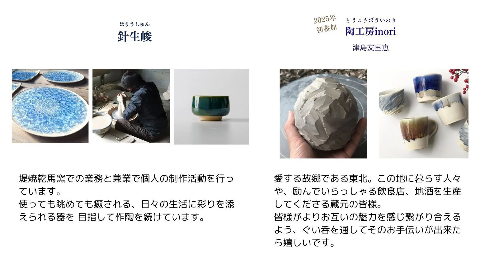 仙台市の陶芸家 針生峻さんと一緒に日本酒を楽しむ交流会。 陶芸家としてのお話や今回制作したぐい呑みのお話など普段聞けないお話を聞くことができます。