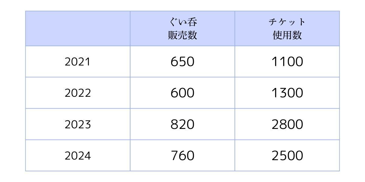 ・過去の開催ではぐい吞の過剰在庫になってしまうことがあった