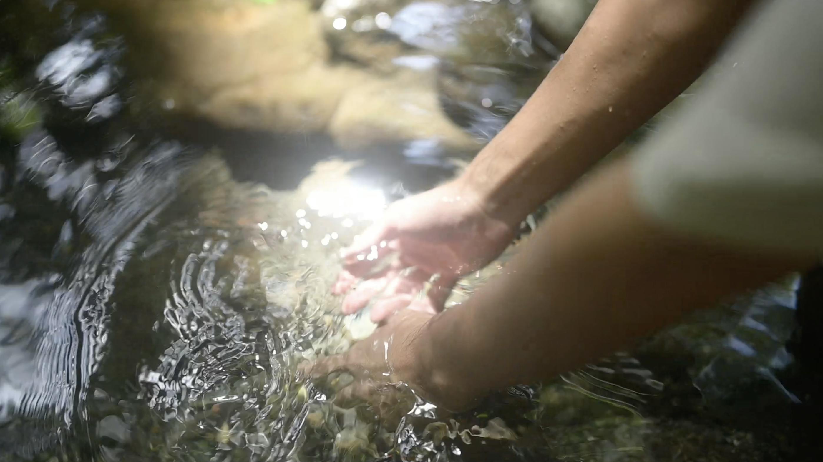 木々に触れ、湧き水に手を浸し、苔や大地をマッサージするようにふれながら、“触れること”の本質をそっと思い出すような時間を、丁寧に映像に収めていただきました。