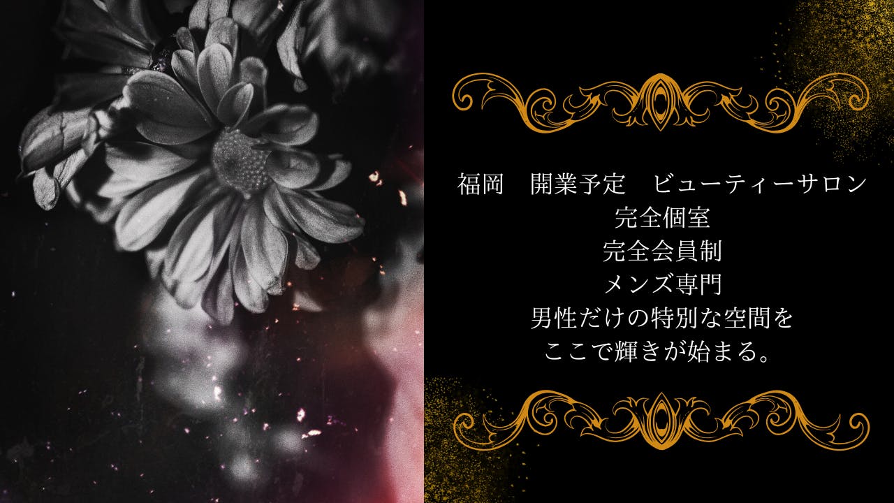 私たちは、福岡県を拠点としたメンズ完全個室、完全会員制ビューティーケアサロンを計画しています。活気あふれる福岡の地で、多くの男性が仕事や生活の合間にリフレッシュできる「男性が自分らしく輝ける特別な空間」を提供することを目指しています!