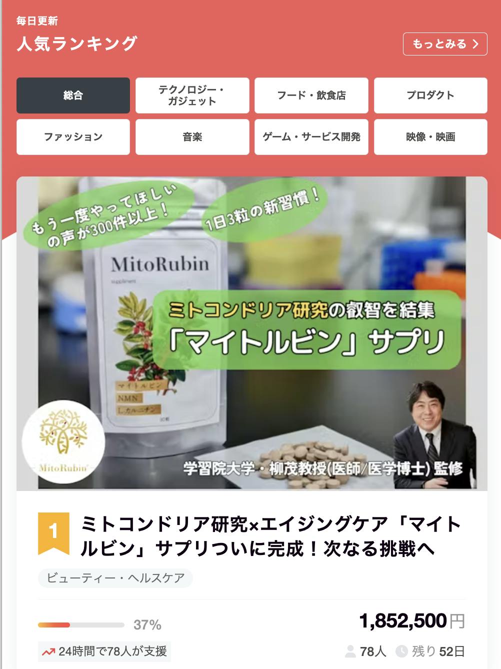 プロジェクト初日には、CAMPFIREの総合ランク1位を獲得し、多くの方からご注目いただくことが叶いました。