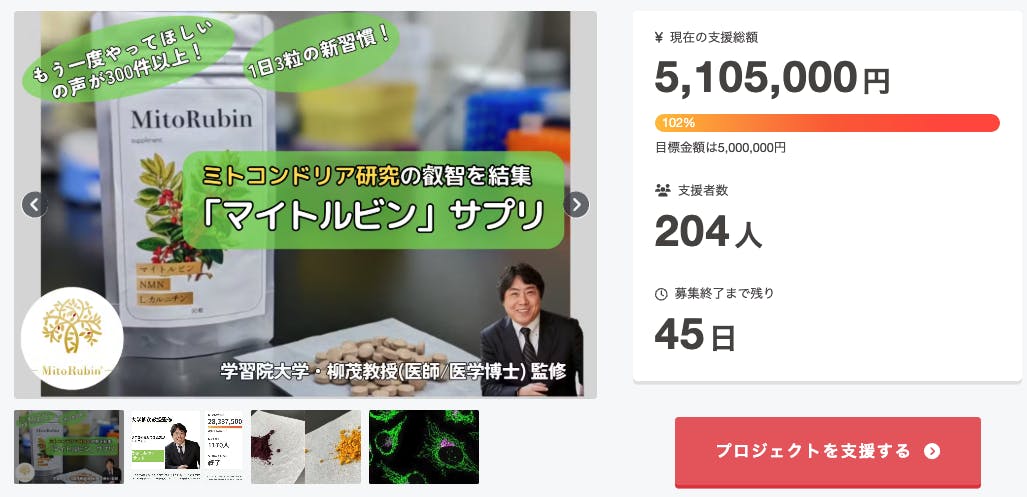 こんにちは!健康美容サプリの開発を目指す、株式会社マイトジェニック クラウドファンディングチームです。