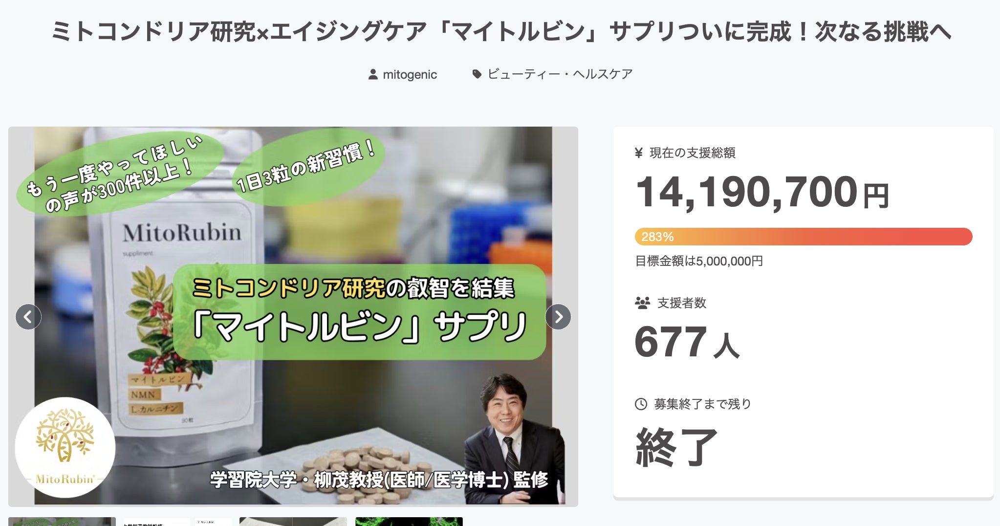 こんにちは! 健康美容サプリの開発を目指す、株式会社マイトジェニック クラウドファンディングチームです。