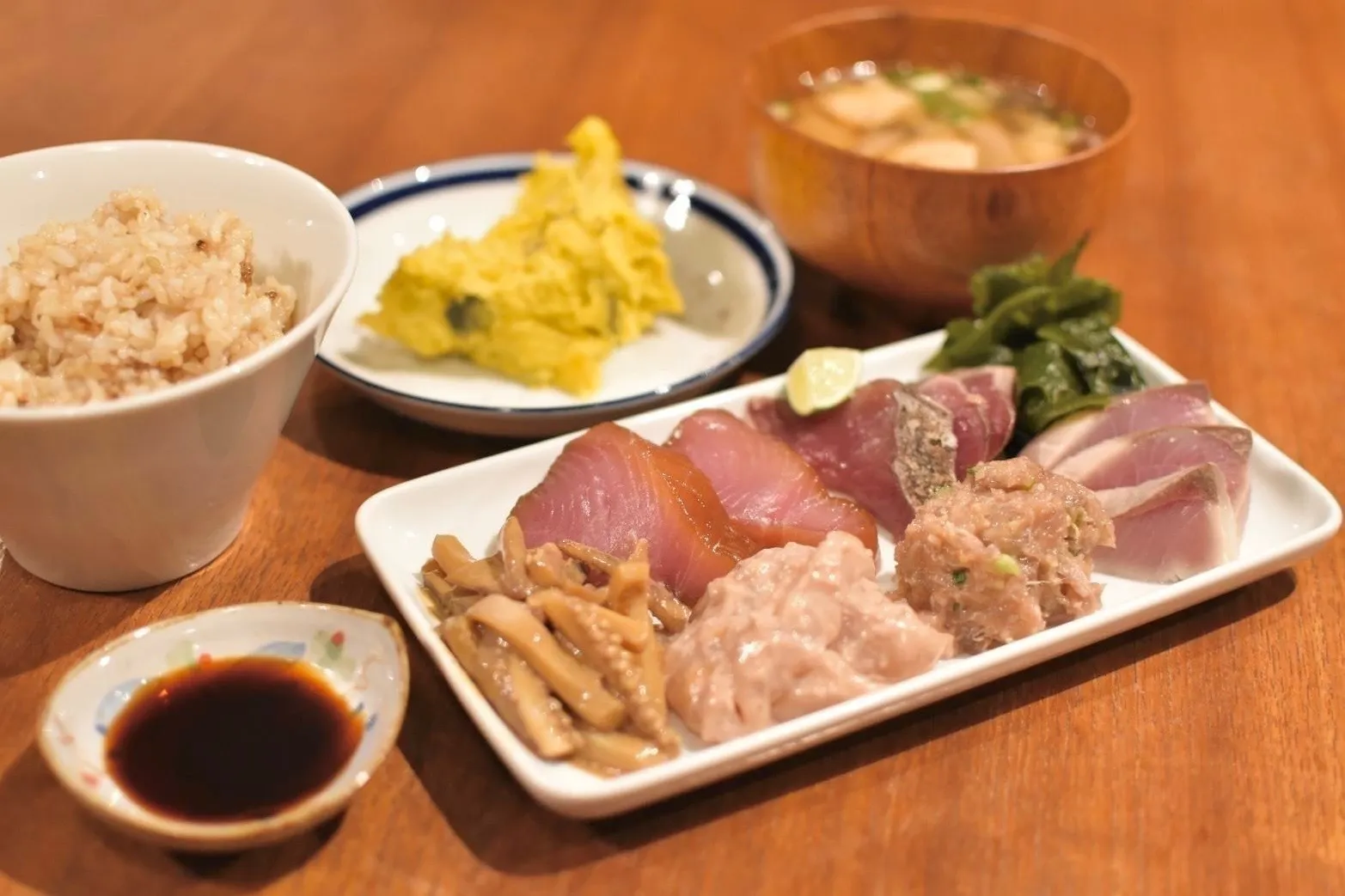 当店は仕入れを山陰(東は境港、西は浜田)に絞り、そこで季節によって獲れた魚介類を最適な加工方法で、前述しましたとおり添加物不使用、昔ながらの技法で作られた調味料などを使用し素材の美味しさを最大限に活かした食事をご提案しています。