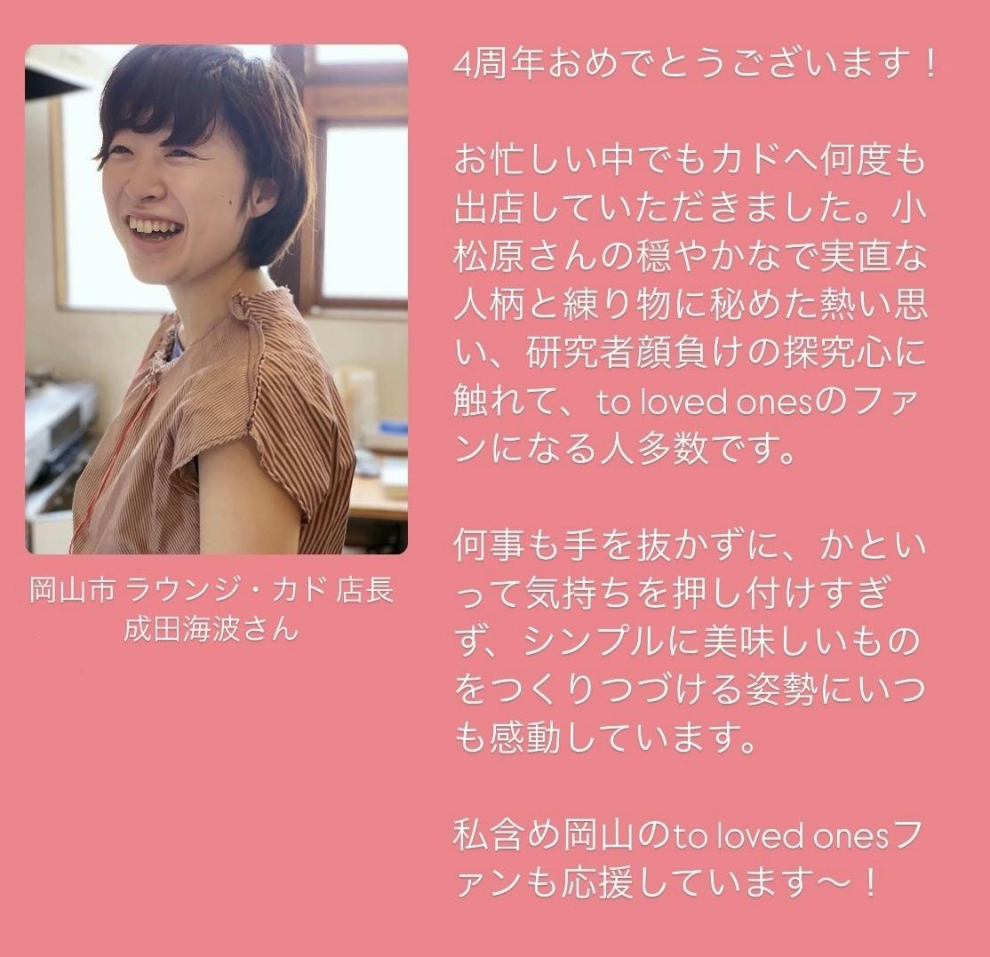 開業し初めての県外出店でお世話になった事をきっかけに、定期的に伺わせていただいているラウンジ・カド。店長の成田さんは穏やかな雰囲気で様々な見識溢れる方で、出店の度に楽しい時間とラウンジ・カドの素敵な空間に癒されています。この度は応援メッセージ誠にありがとうございます!