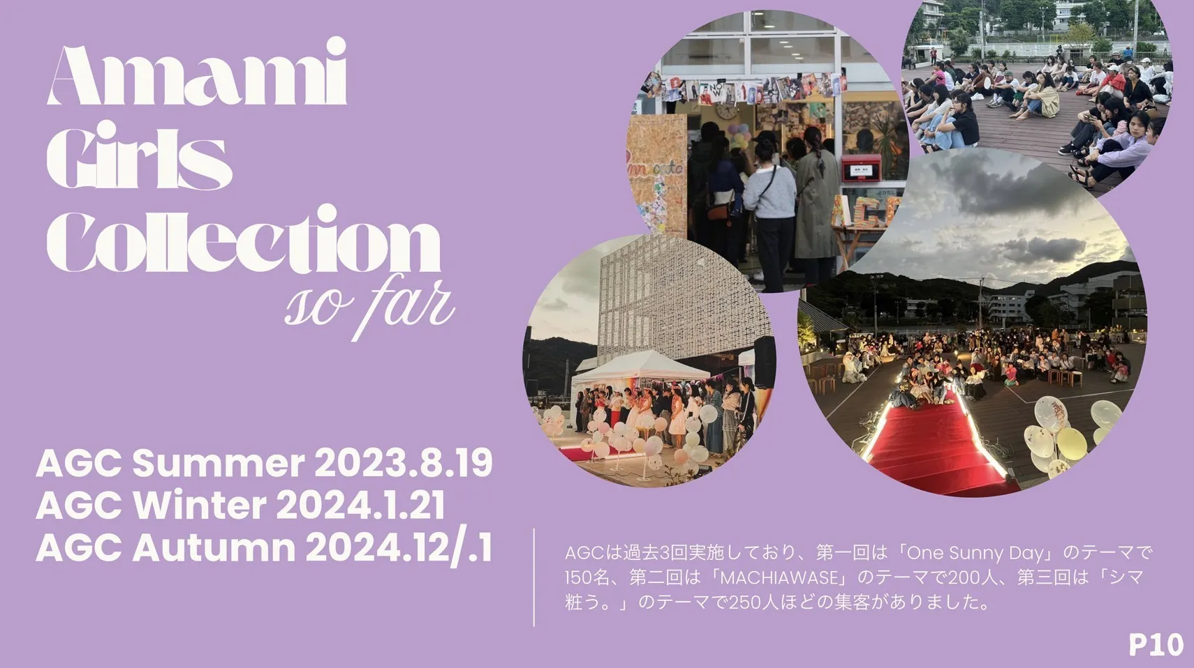 コロナ禍で無くした人との距離を取り戻すために始まった、ファッションショーとパフォーマンスで構成されるイベント「Amami Girls Collection」の開催や、奄美群島日本復帰70周年記念事業での記念式典の司会や語り部取材、奄美群島日本復帰の記憶を次の世代に継承することを目的にしたオリジナル授業、夏休みの宿題を通して小中学生と高校生の交流の場をもつ「Tierra子屋」など、地域活性を意識して幅広く活動しています。