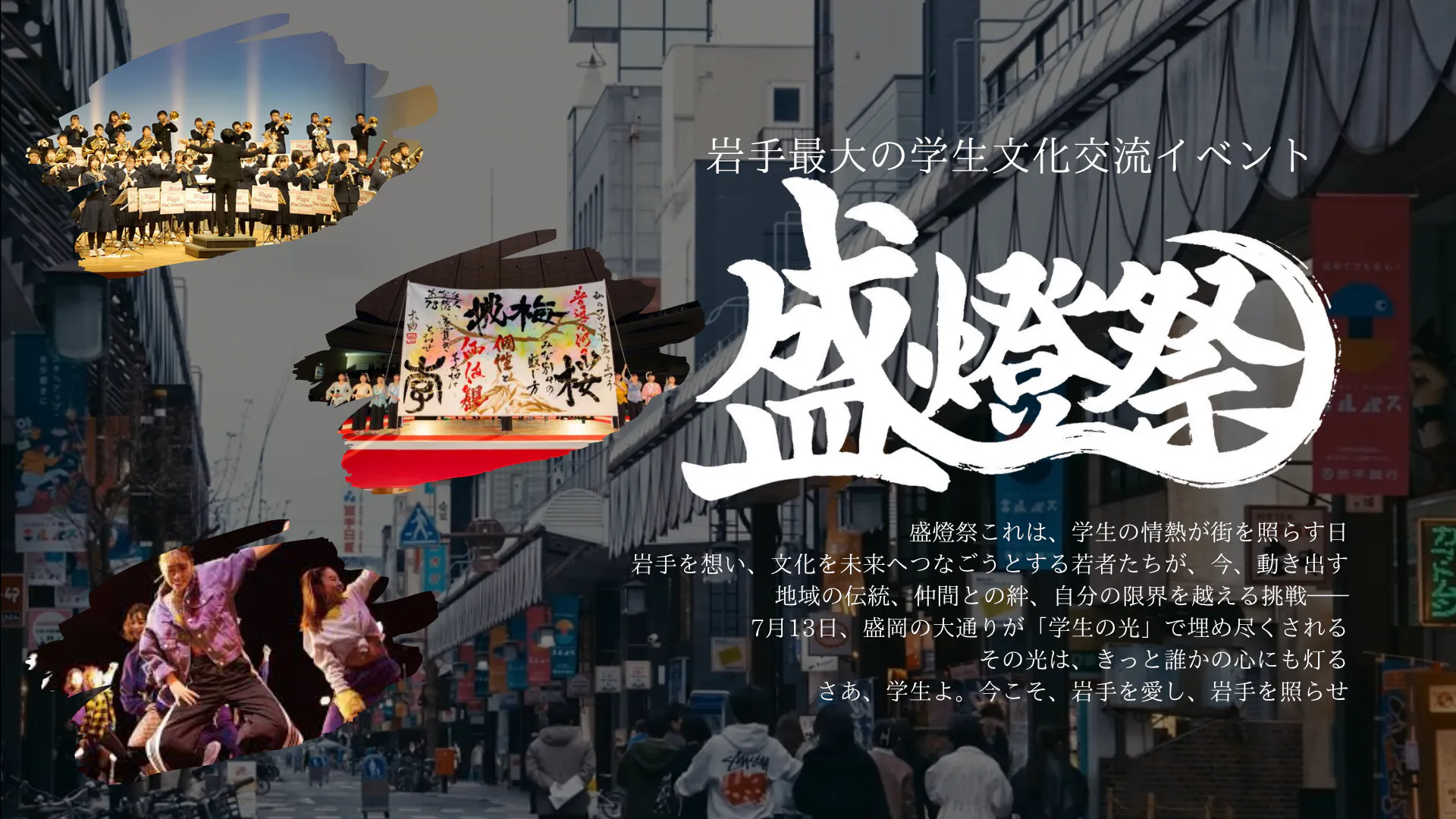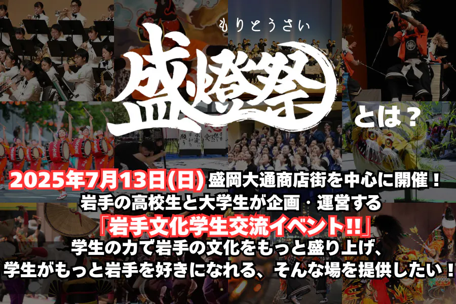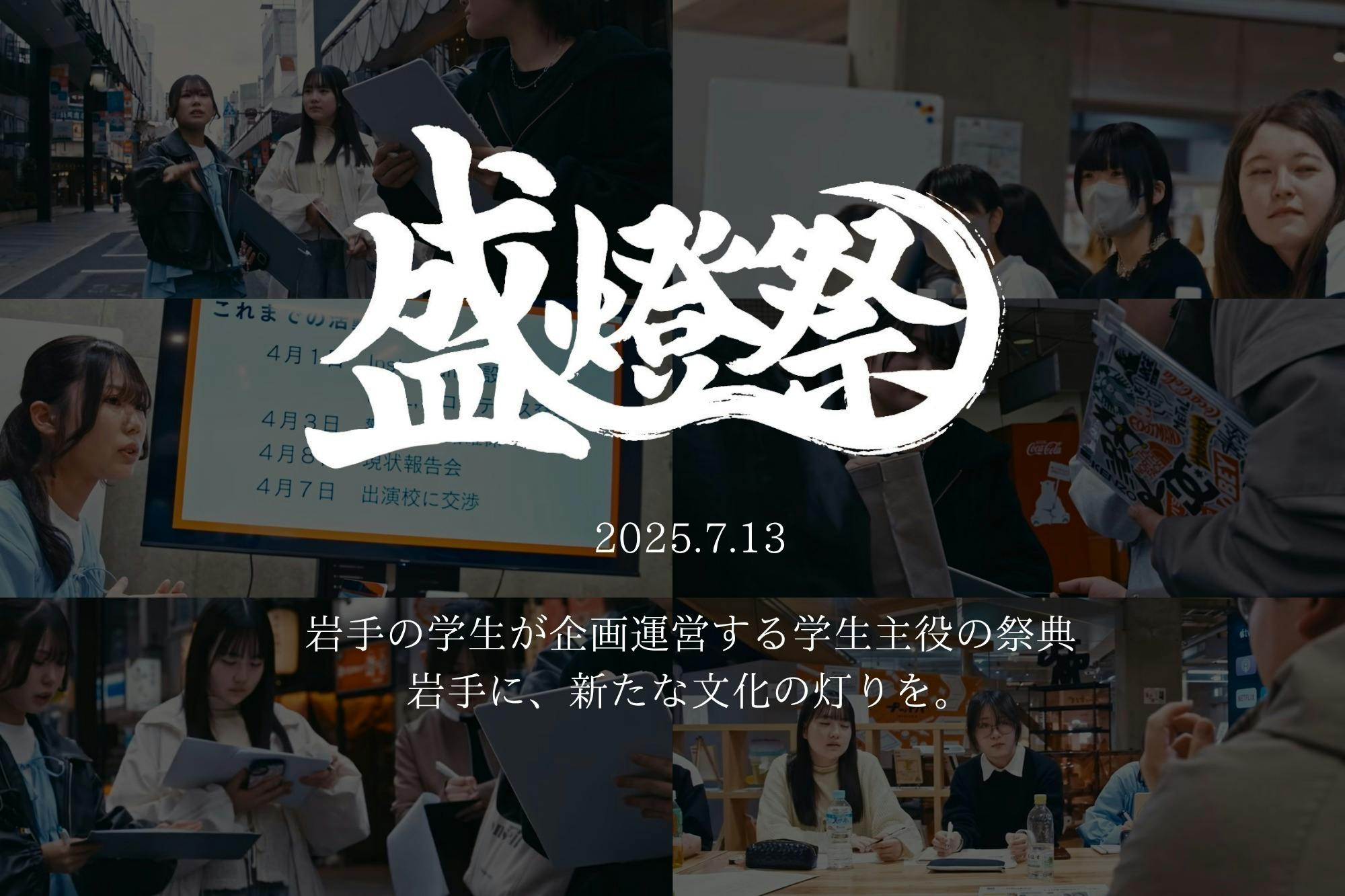 私たちは、2025年7月13日(日)、岩手県・盛岡大通商店街で初めて開催される、学生文化交流イベント「盛燈祭」を企画運営する、高校生・大学生の集団です。