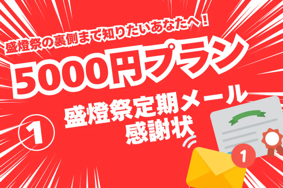 ①盛燈祭定期メール+感謝状盛燈祭の活動を逐一知りたい人におすすめです!