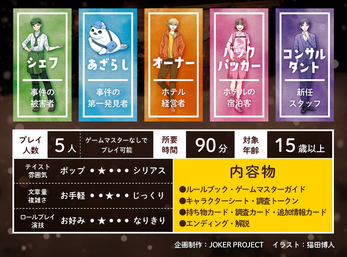 初めてマーダーミステリーというものを楽しむ方にもおすすめできるこの作品を、より多くの方にお届けしたいと思い、今回のパッケージ化プロジェクトを立ち上げました。