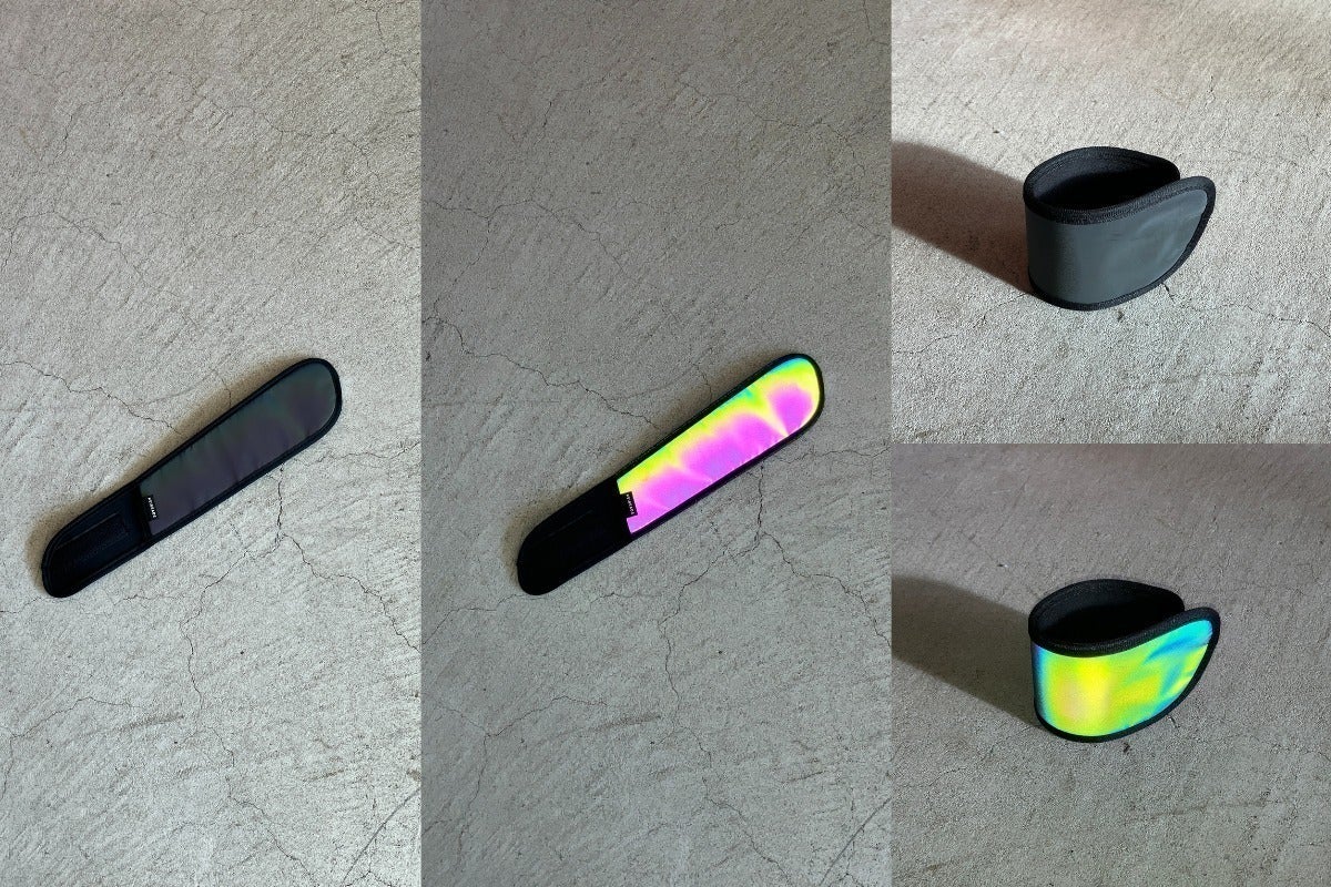 夜道の安全性を最優先に考え、自転車やランニングにも使えるオーロラに光るアイテム3点を開発しました。