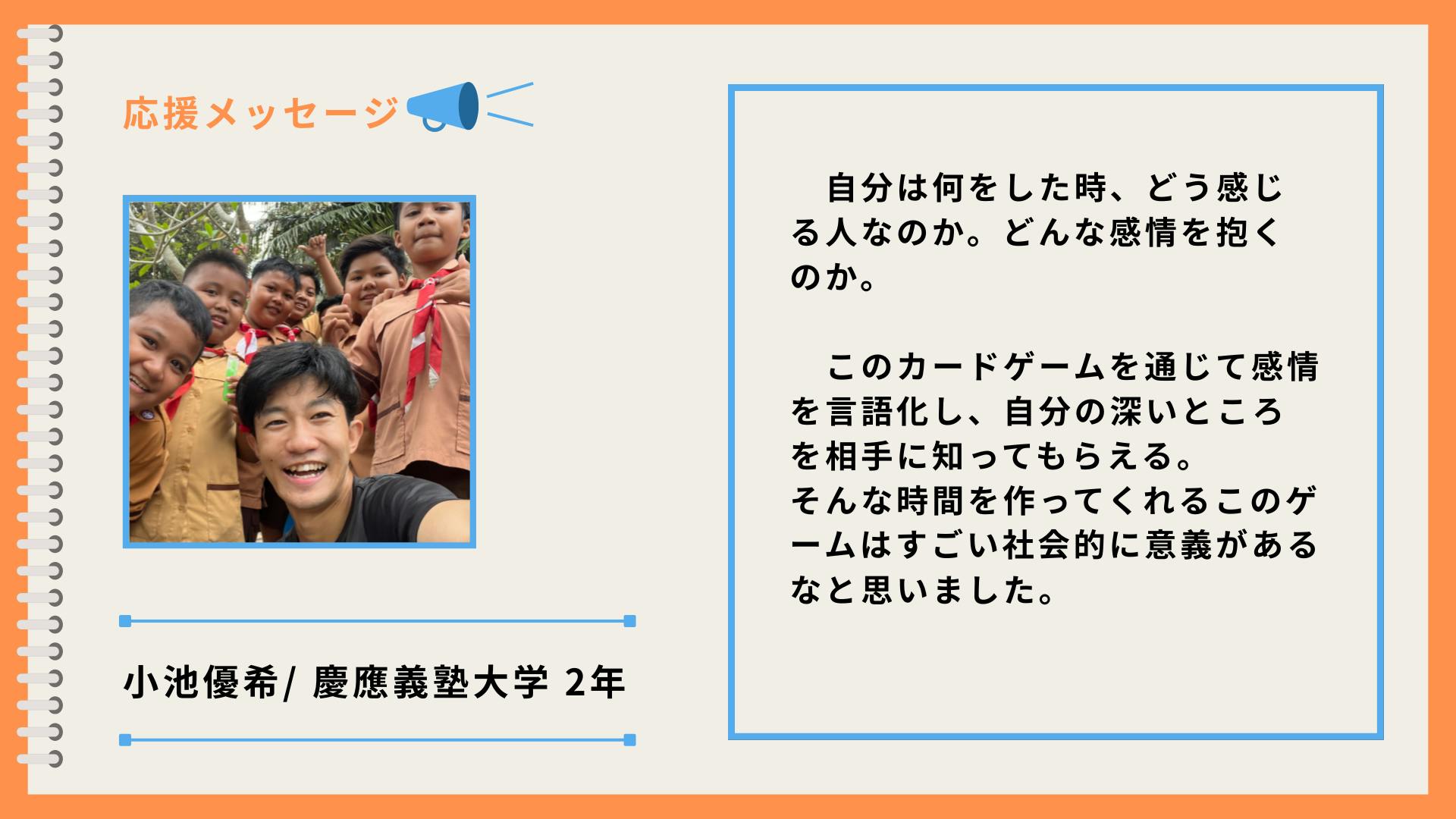 慶應義塾大学2年生の小池 優希 さんより、応援メッセージをいただきました!