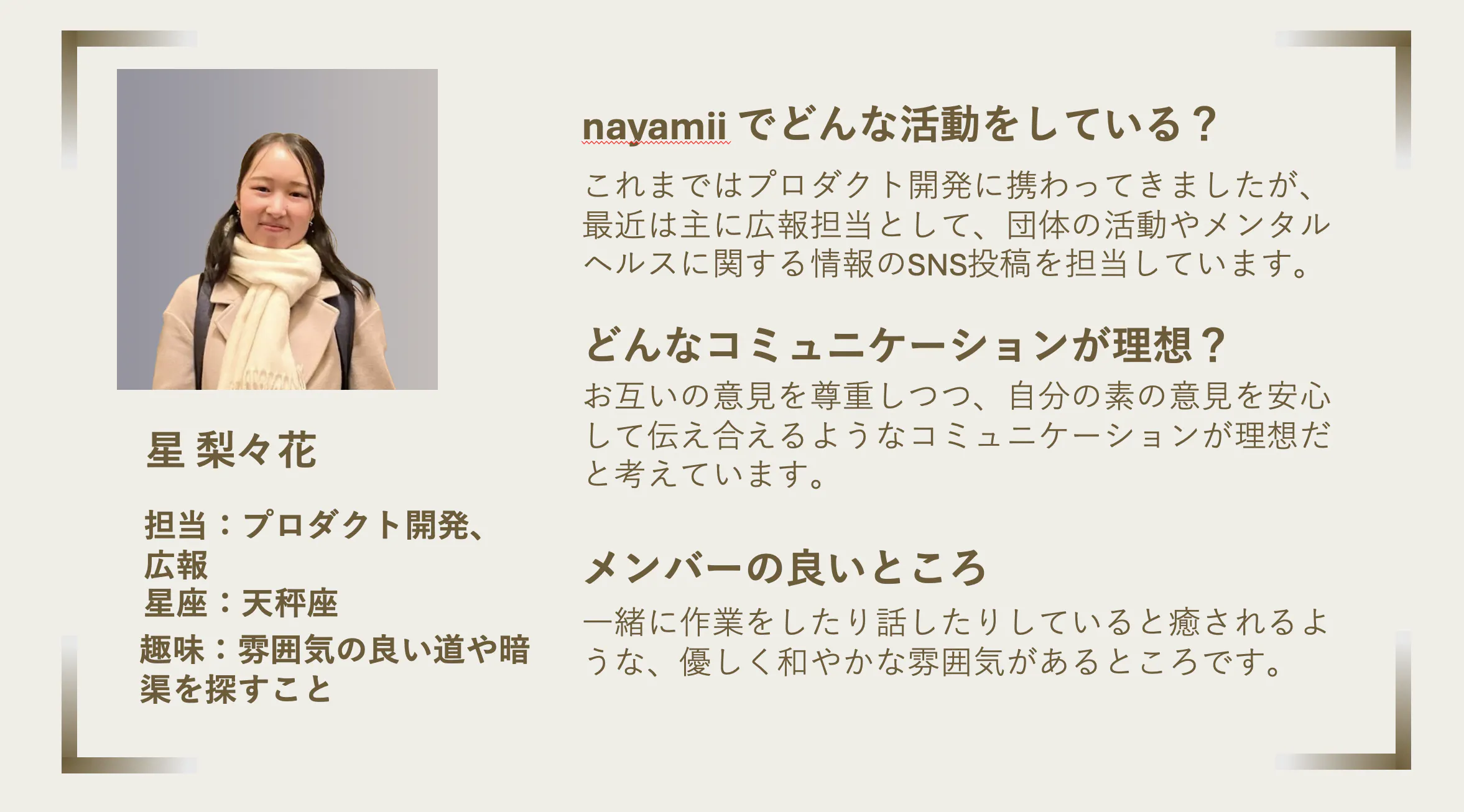 nayamii では、プロダクト開発、広報チームで活動しています!