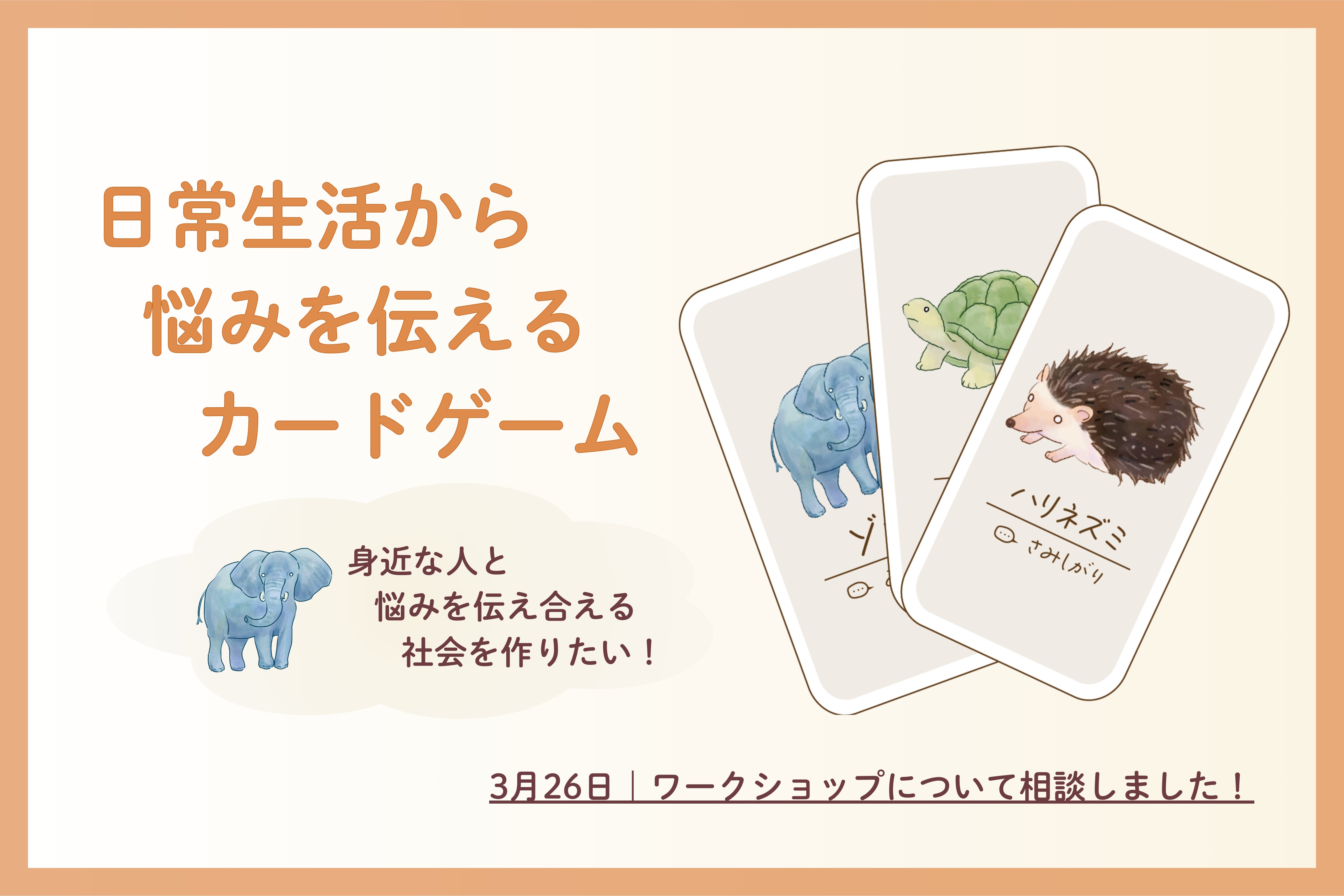 実際にゲームを遊んでいただき、ワークショップの改善点や、身近な人と相談できる社会を求めているユーザーの具体的なシナリオについて意見交換を行いました。