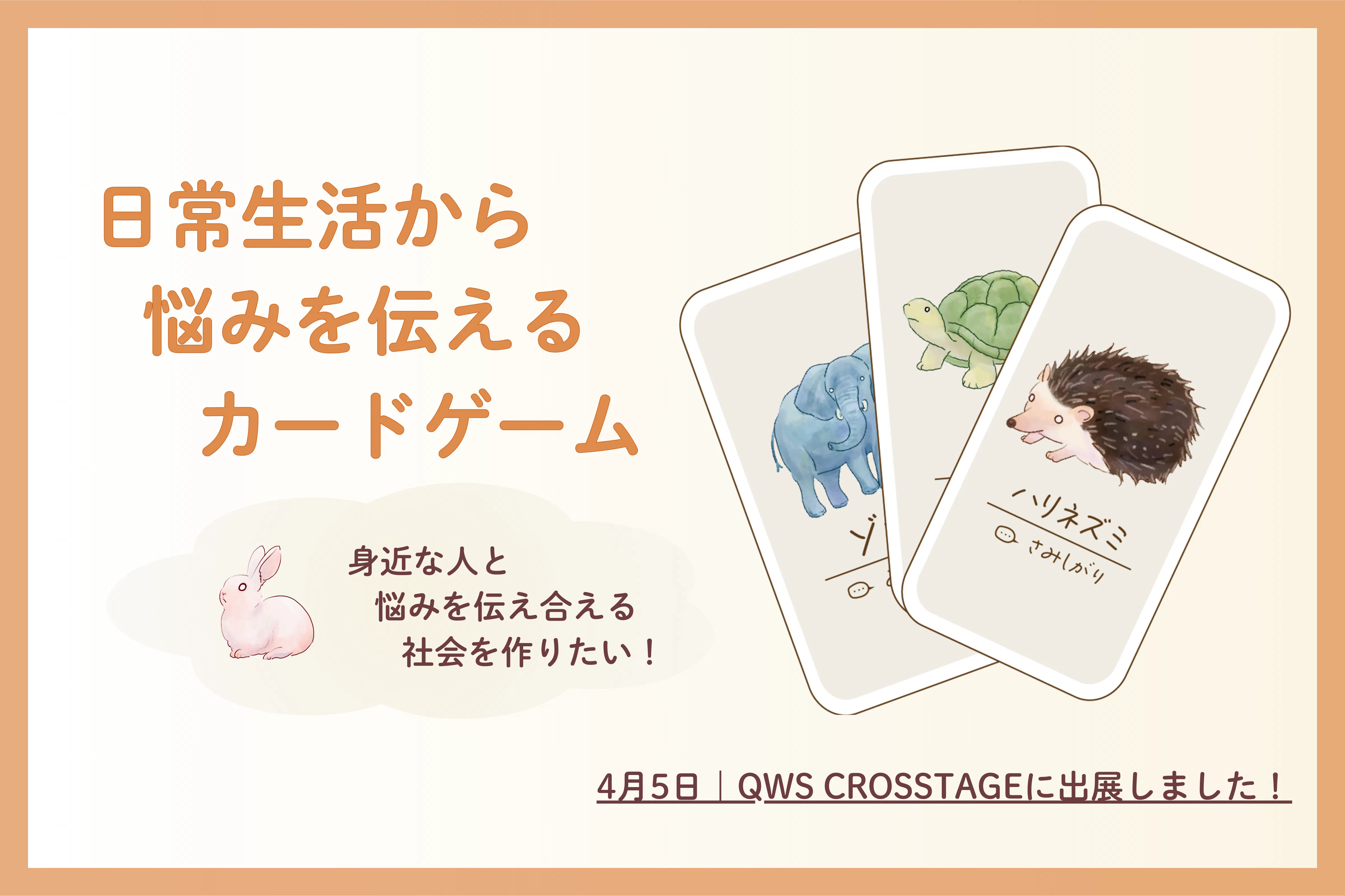 4月4日・5日に、QWS CROSSTAGEに出展し、こころのトレジャーハントの体験や、気持ちを伝えることに関するアンケートを実施しました。