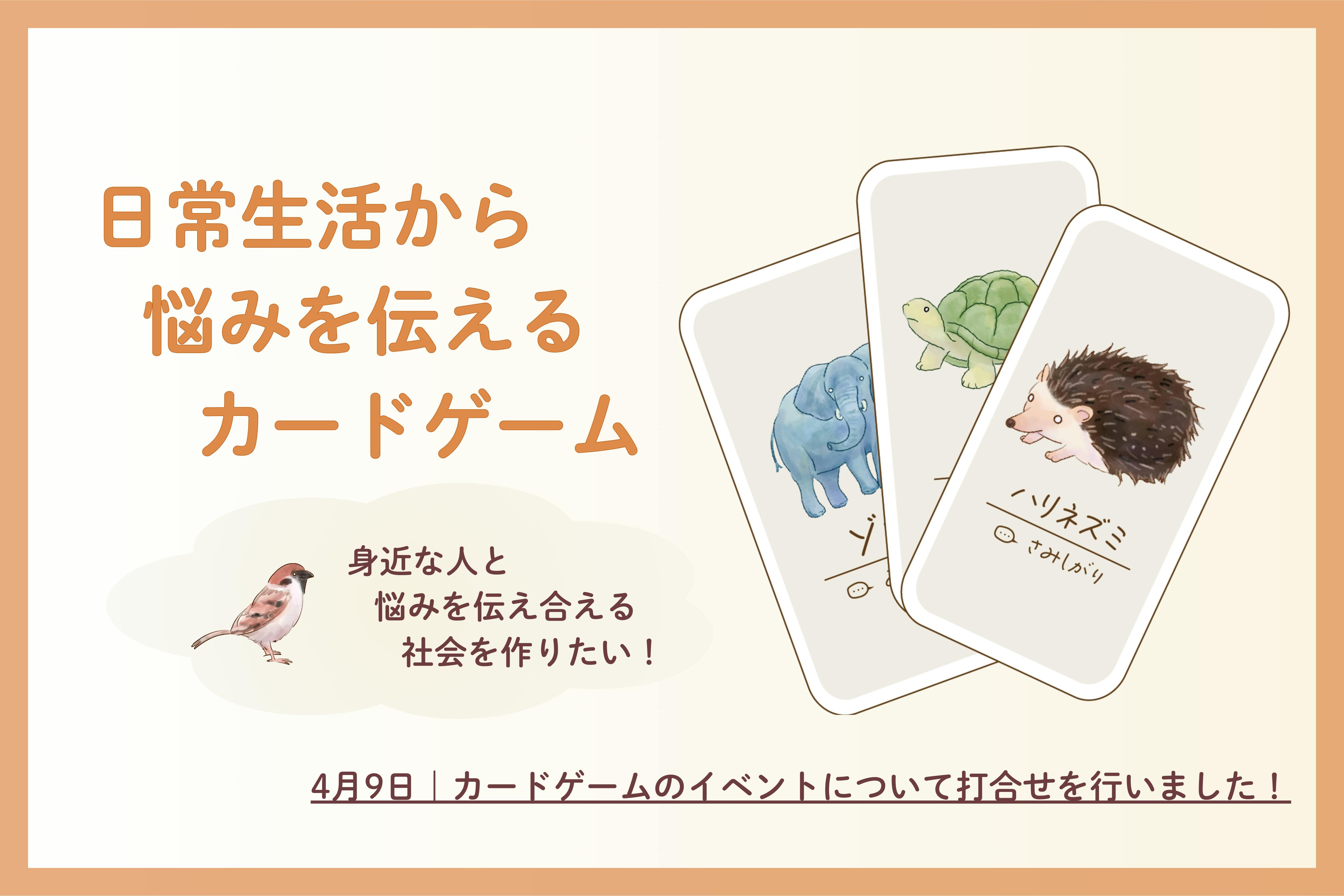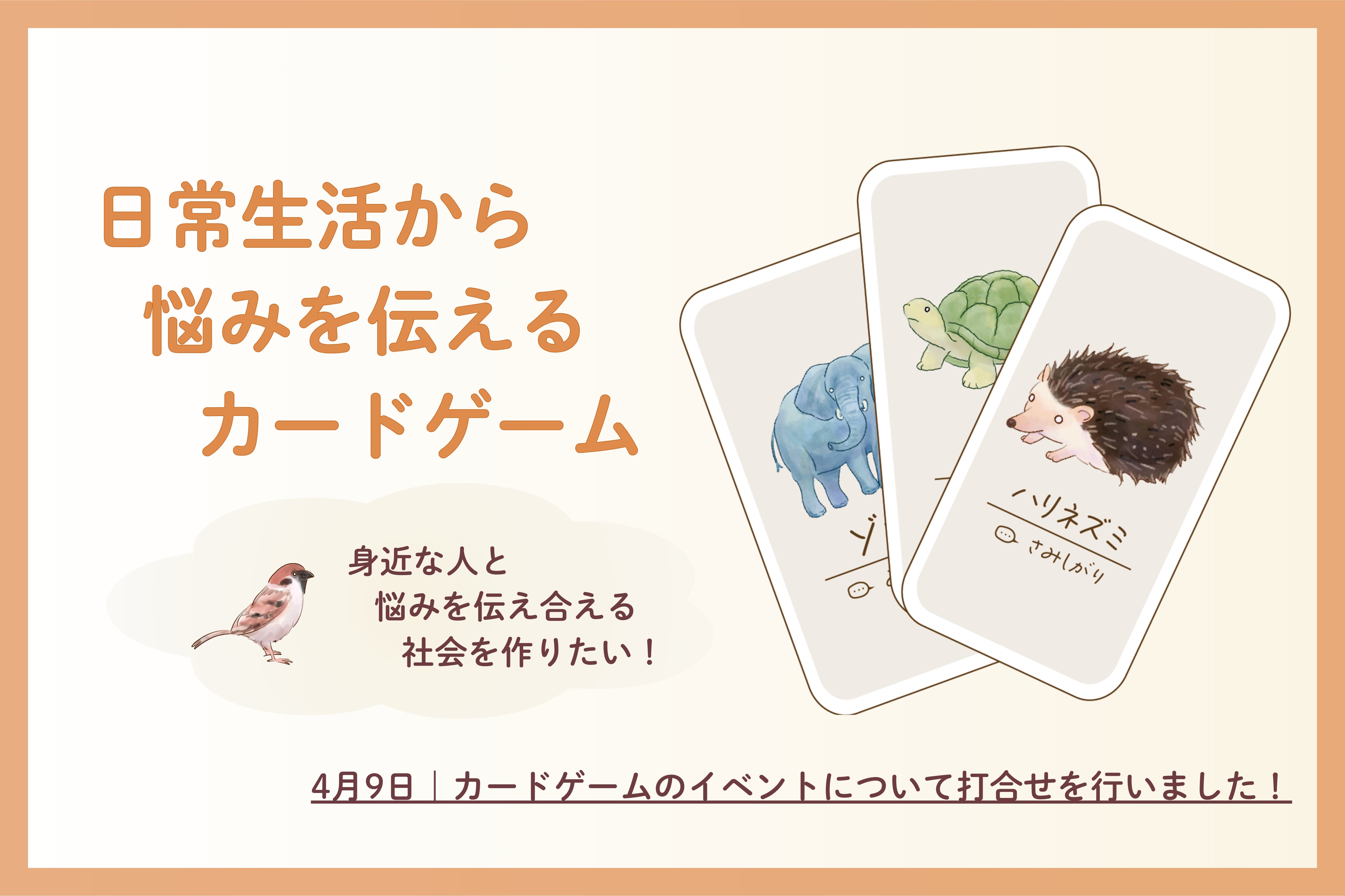 本日は、カードゲームを用いた母親向けのイベントと高校生向けのイベントについて、それぞれ打合せを行いました。