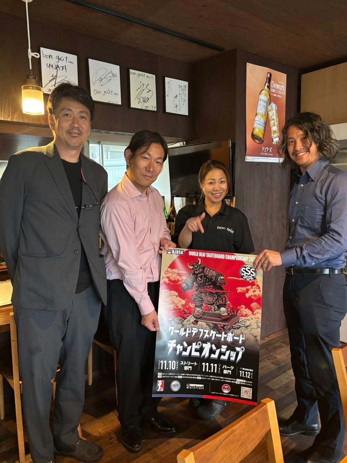 こんにちは。クラファンにご協力いただきありがとうございます。おかげさまであと少しで100万円近くとなります。残り11日となりますが引き続きどうぞよろしくお願いいたします。2025年6月9日(月)に、群馬県高崎市のスケートパーク兼スケートショップ HUBFUN 様を訪問させていただきました。(インスタグラム:@hubfun_skate @maschi.jp)代表の増田様には、クラウドファンディングへのご協力、そして店内でのポスター掲示のご協力をしていただきました!本当にありがとうございました。お忙しい中お時間をいただき感謝いたします。ワールドデフスケートボードチャンピオンシップ、必ず成功させます!協会スタッフ: 会長 前原