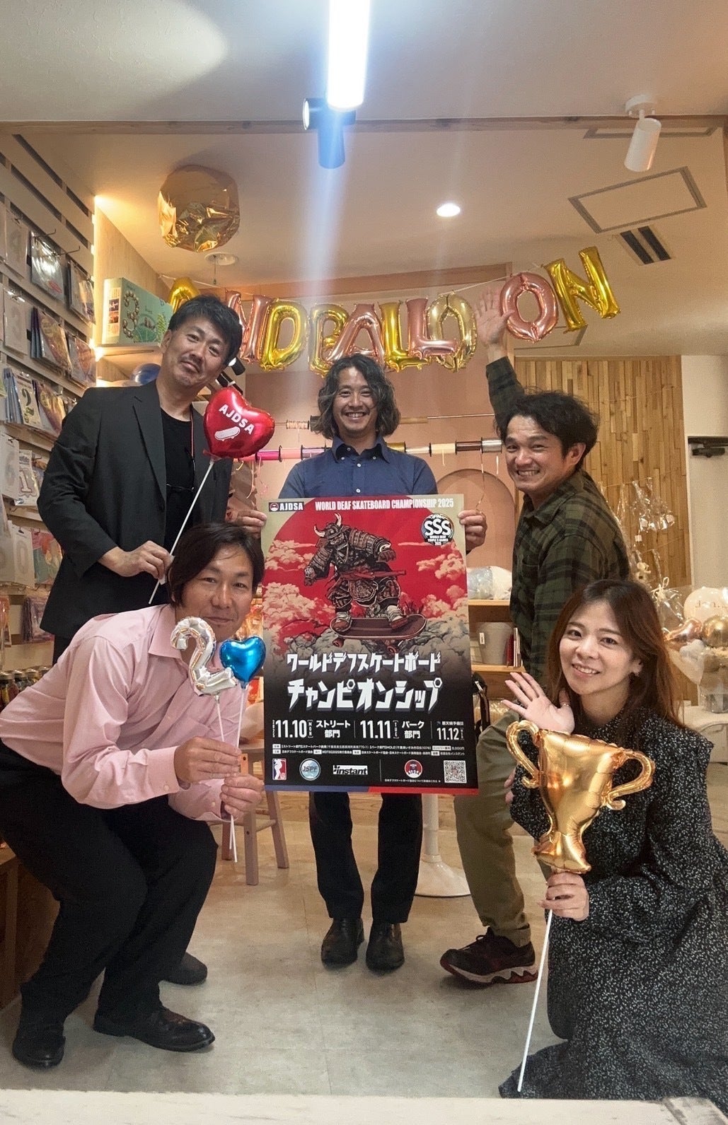2025年6月3日(火)ワールドデフスケートボードチャンピオンシップの開催地が千葉県ということで、千葉県茂原市のアンドバルーン様を訪問させていただきました。インスタグラム:@yukarin.andballoon今回の訪問では、以下の内容をお話しさせていただきました。①ワールドデフスケボーチャンピオンシップについて②私たち協会の取り組みについて③スケートボードをデフリンピックの新種目として追加するための活動について④インスタシェア・クラファンご協力のお礼⑤ワールドデフスケートボードチャンピオンシップのポスター店内掲示のご依頼⑥クラファンのビラの店内掲示のご依頼そしてなんとサプライズに、協会のロゴのハート型の素敵なバルーンを作っていただきました!お誕生日や記念日用の可愛いバルーンのご依頼をしたい方はぜひ@yukarin.andballoon様へ足を運んでみてはいかがでしょうか?当日は本当にありがとうございました!協会スタッフ: 前原/寺澤/中道/宍倉