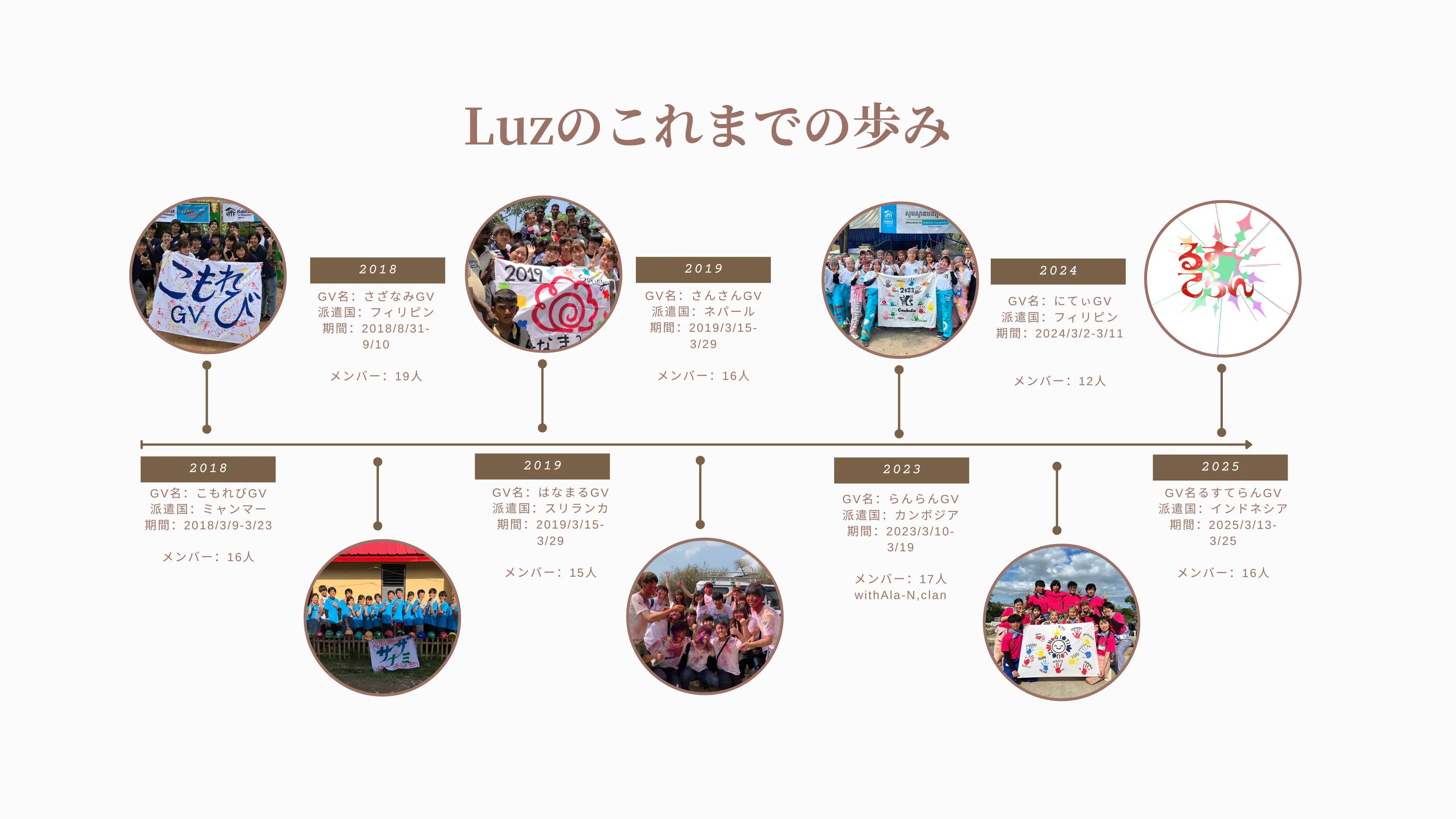 LUZにはスペイン語で「光」という意味で「貧しい人たち、困っている人たちの光になれるように」という思いが込められています!日々のミーティングに加え、国内ボランティアや今回参加するGVなどの活動を行っています。